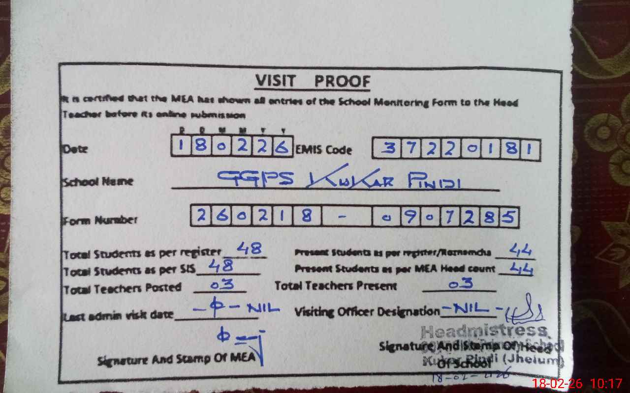 | EMIS Code: 37220181 | Name of School: GGPS KUKAR PINDI | |||