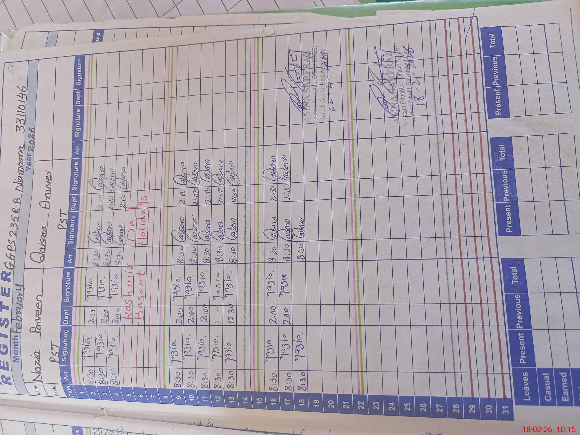 | Name: FA**** PE**** Designation: (School Headmaster's/Headmistress's) PST Phone/Cell Number: 03**** |