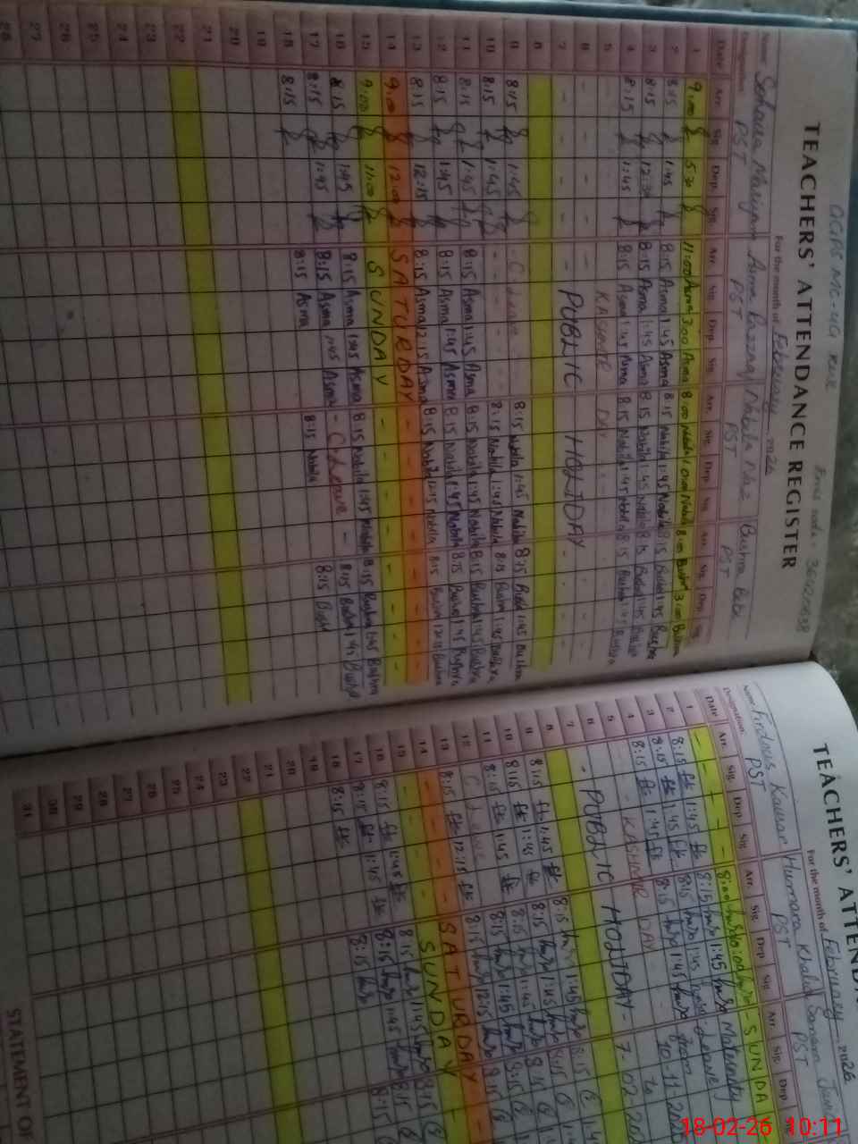 | Remarks (Use Separate Page if Required): During head counting of students teachers shifting the students from one class to other | |||||