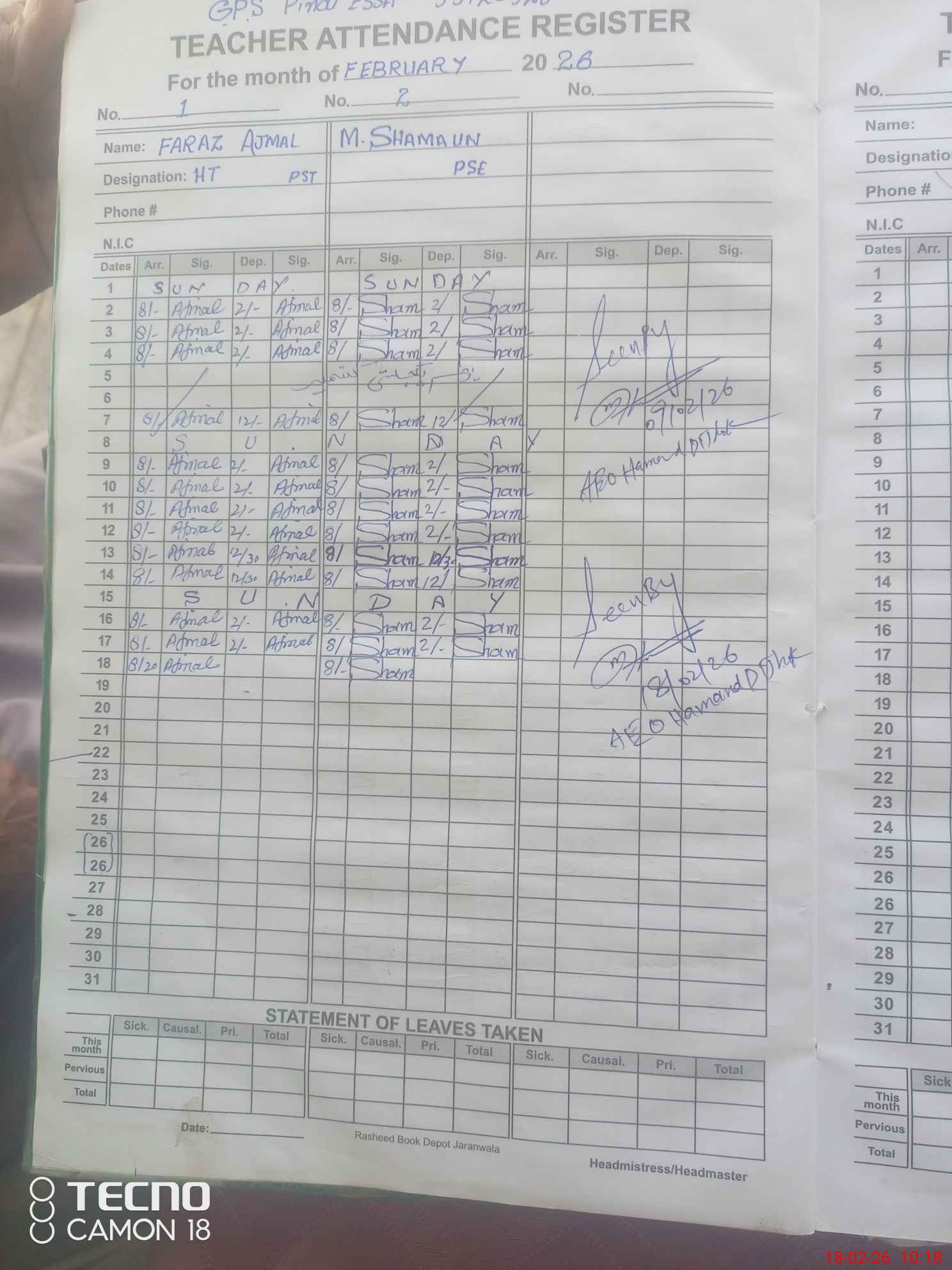 | Name: FA**** AJ**** Designation: (School Headmaster's/Headmistress's) PST Phone/Cell Number: 03**** |