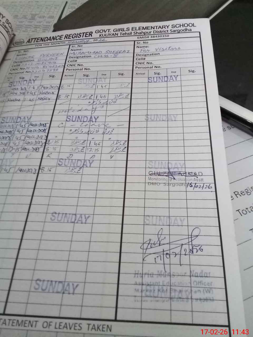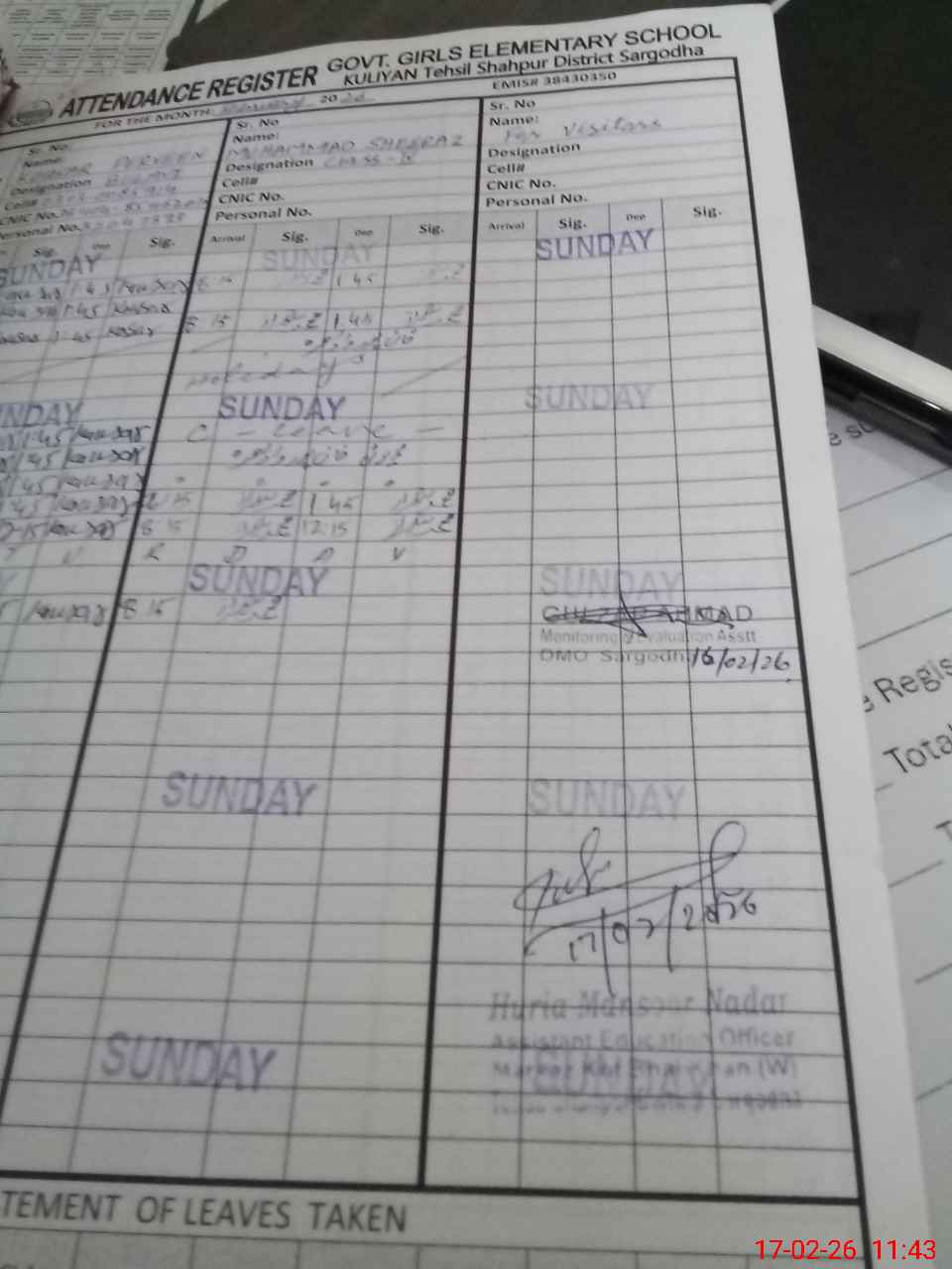 | District: SARGODHA | Tehsil: SHAHPUR | Markaz: KOT BHAI KHAN - FEMALE | Level: Middle | |