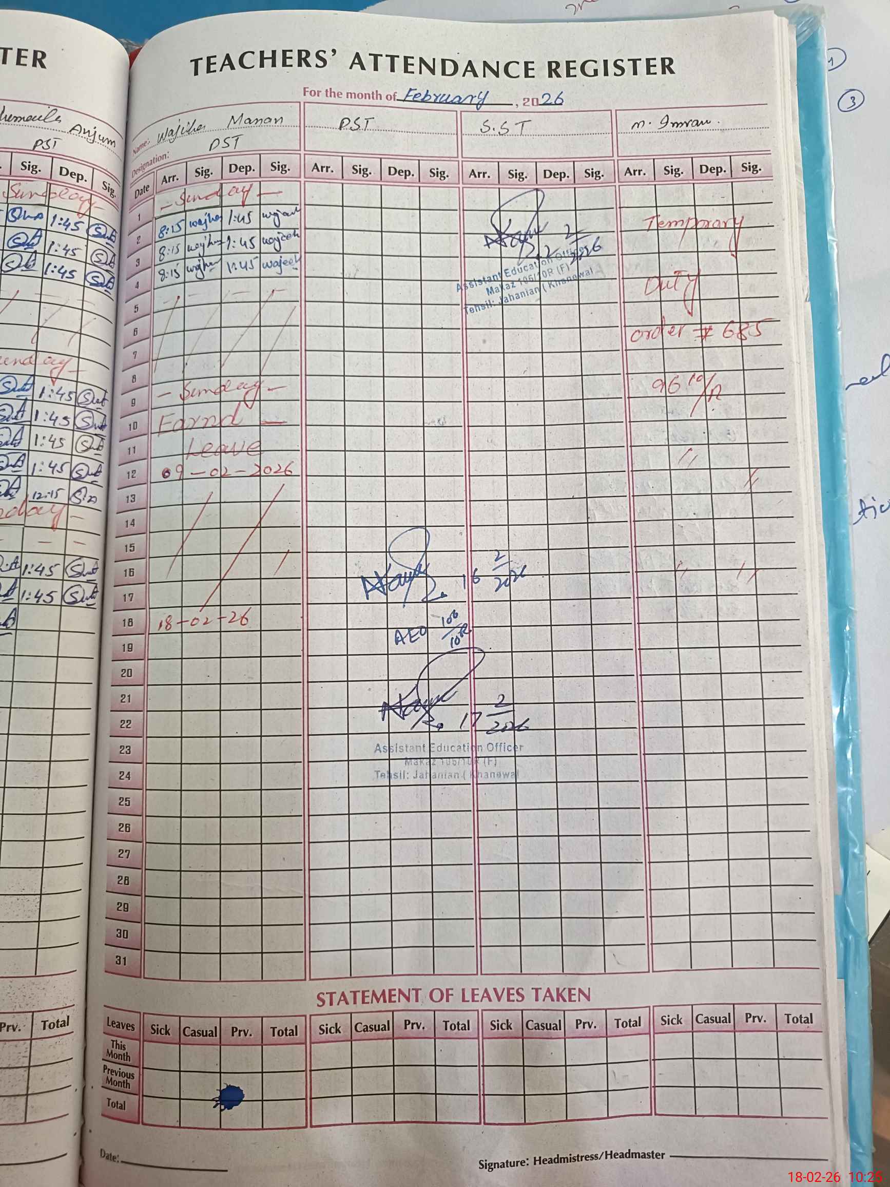 | Leave | Duty | Absent | Maternity | Medical | Ex- Pak |