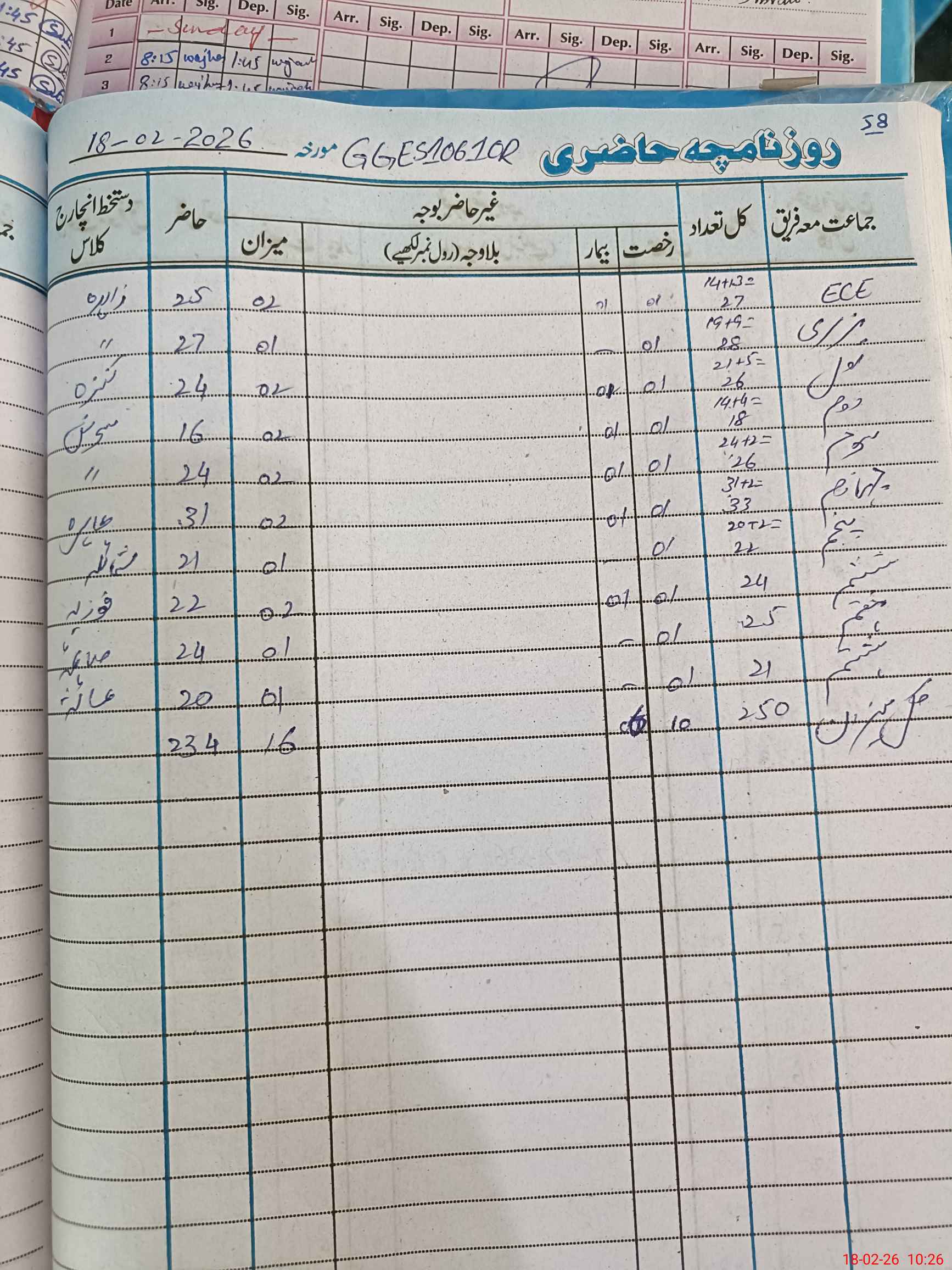 | Total Students Present | 0 | 25 | 24 | 16 | 24 | 31 | 21 | 22 | 24 | 20 | 234 | |||||