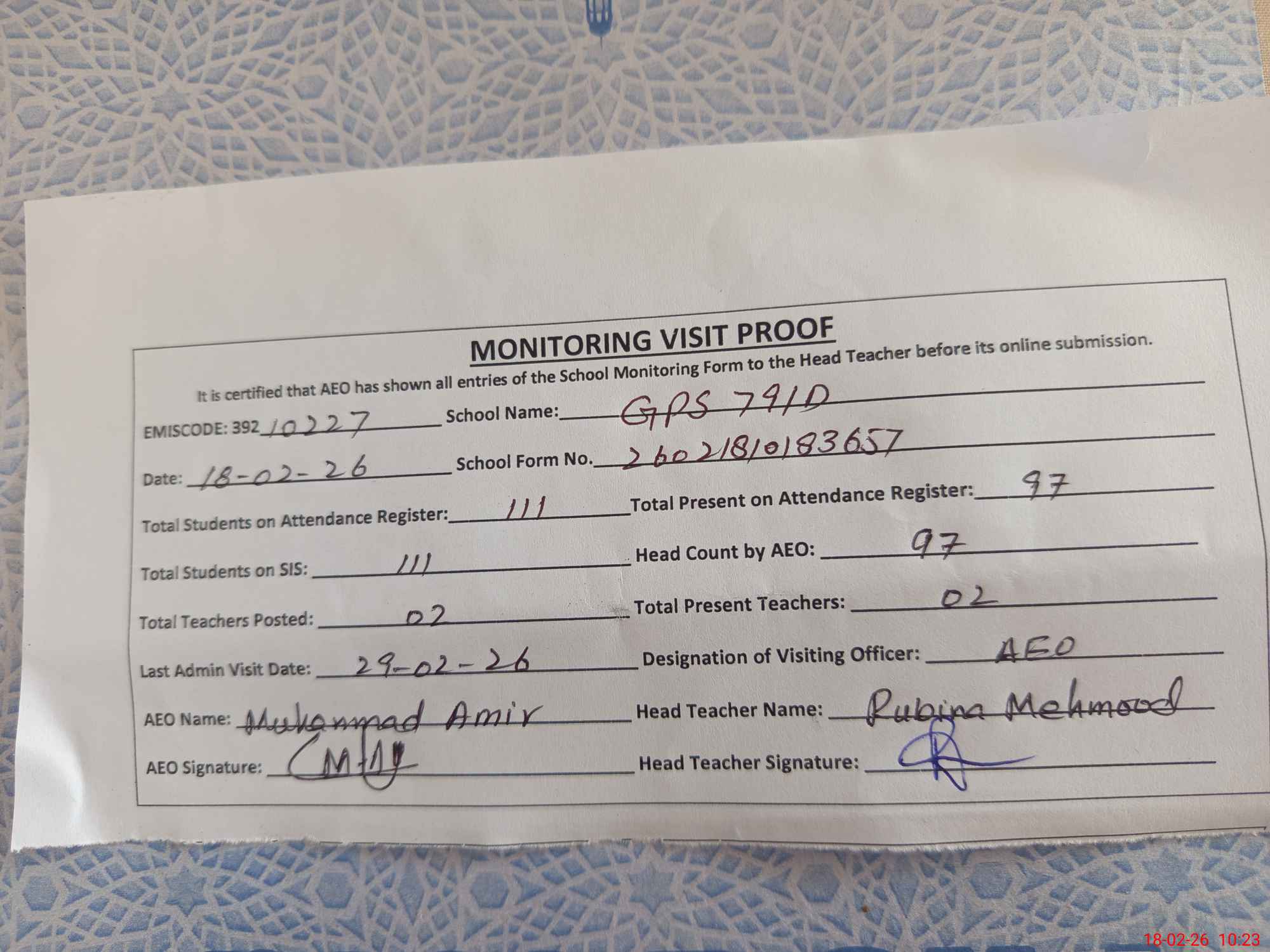 | EMIS Code: 39210227 | Name of School: GPS CHAK NO. 79 D | |||