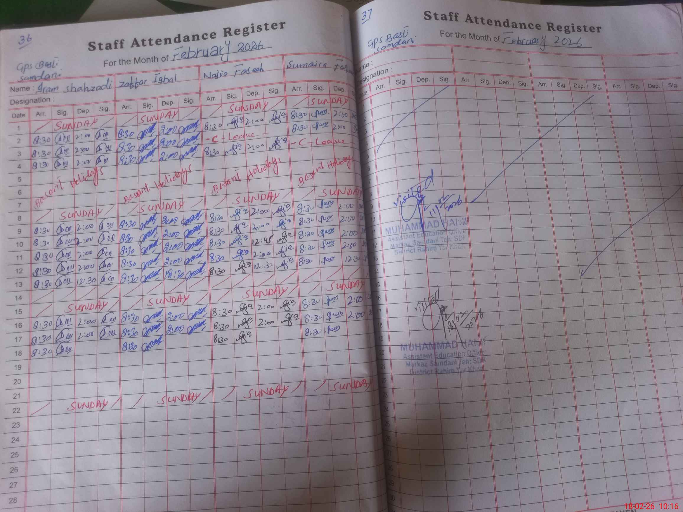 | Sr.No. | Visit Date | Designation | ||