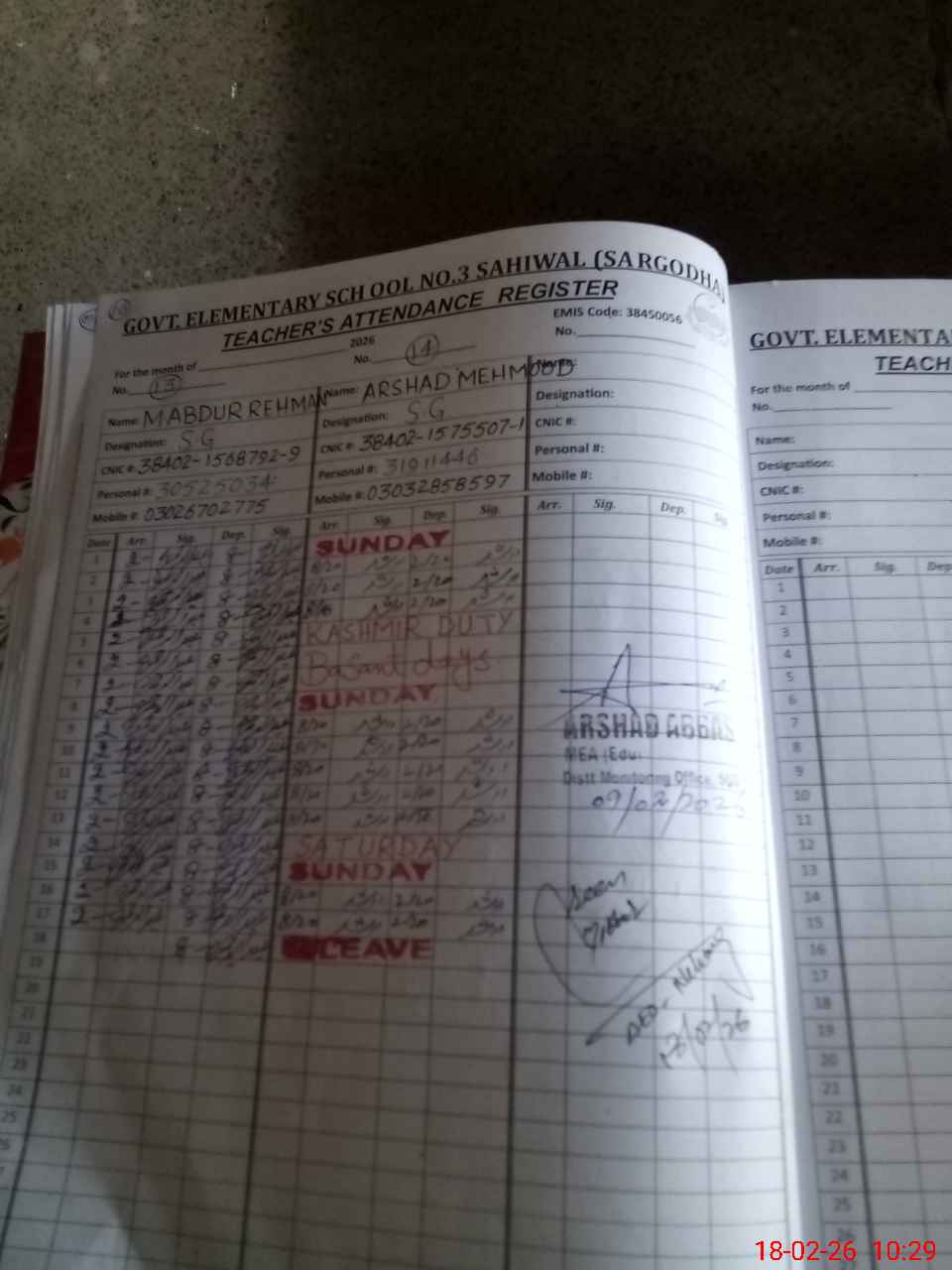 | EMIS Code: 38450056 | Name of School: GES NO.3 SAHIWAL | |||