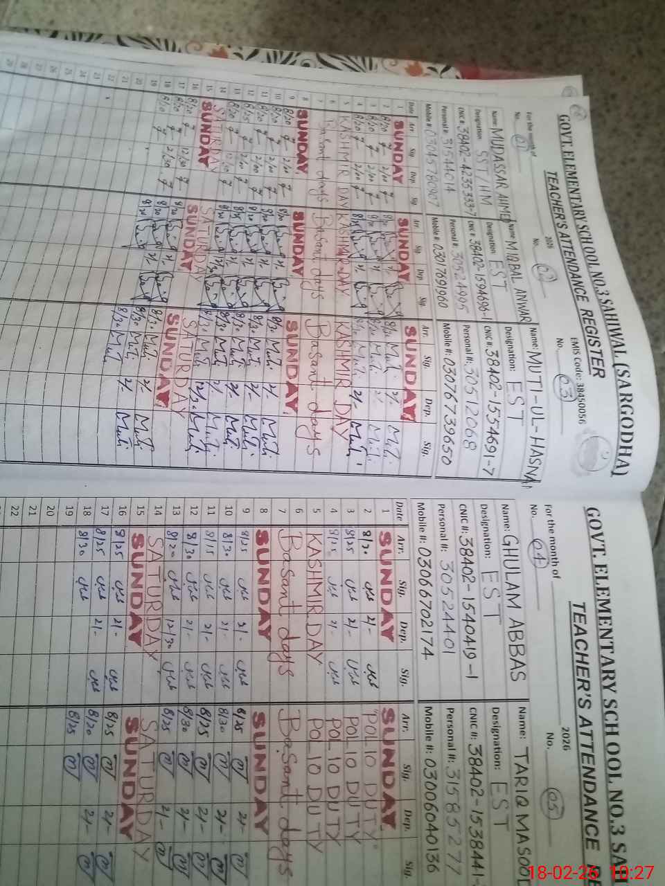 | Name: MU**** AH**** MU**** Designation: (School Headmaster's/Headmistress's) HEADMASTER Phone/Cell Number: 03**** |