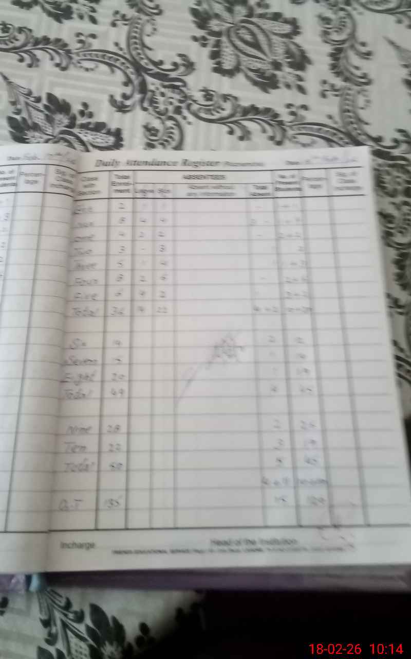 | Total no. of Classrooms: 14 No. of Classrooms Used for Teaching: 10 No. of Classrooms Storing Old Furniture, FTBs, etc: 0Comments if Any: Nil |