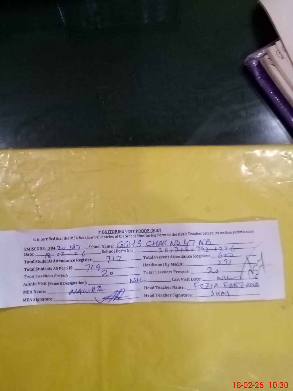 | EMIS Code: 38420187 | Name of School: GGHS CHAK NO.47 NB | |||