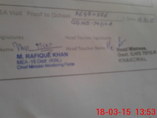 | EMIS Code: 36420386 | Name of School: GGHS 70/10-R ARIANAGAR, KHANEWAL | |||