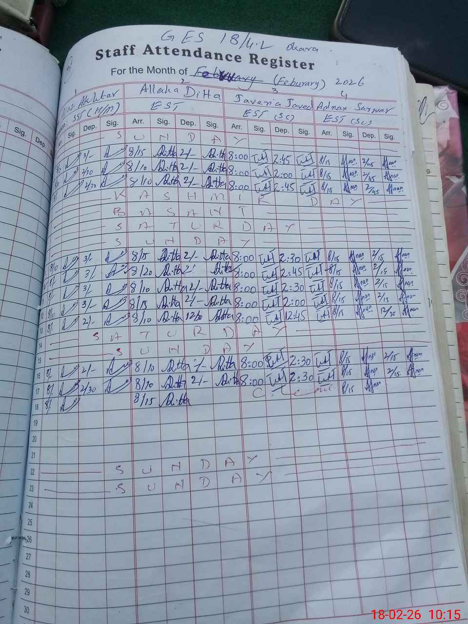 | 36**** | Ma**** Hu**** Ak**** | EST General Arts | Regular | 0 | 0 | 0 | 0 | 0 | 0 | 0 | 0 | 0 | Casual |