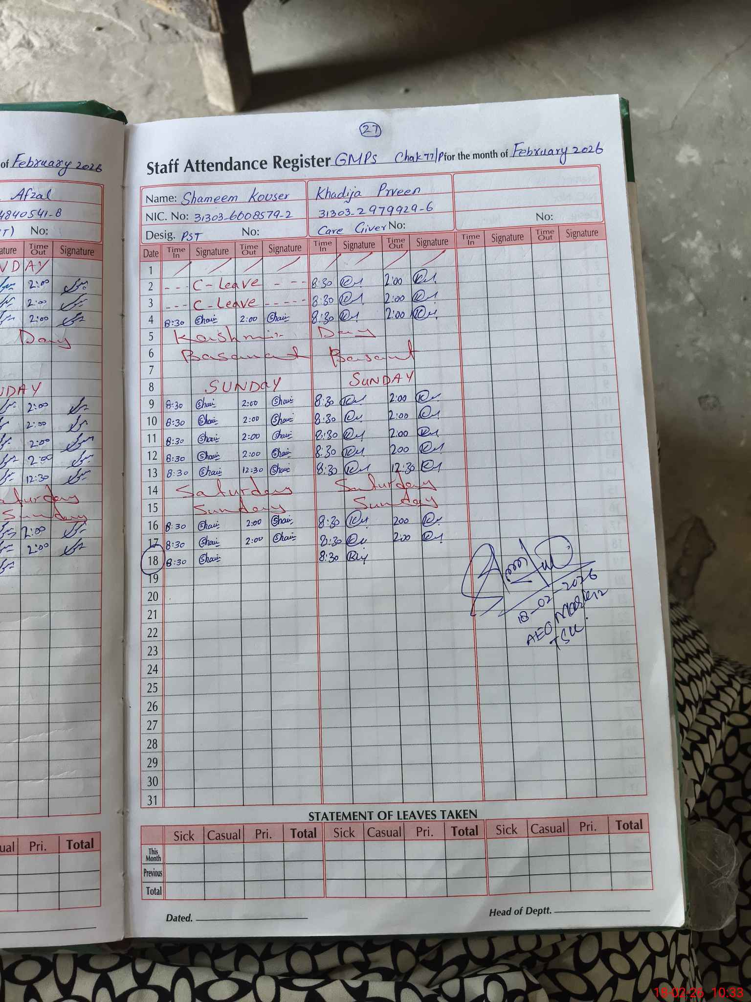 | Name: Si**** Af**** Designation: (School Headmaster's/Headmistress's) PST Phone/Cell Number: 03**** |