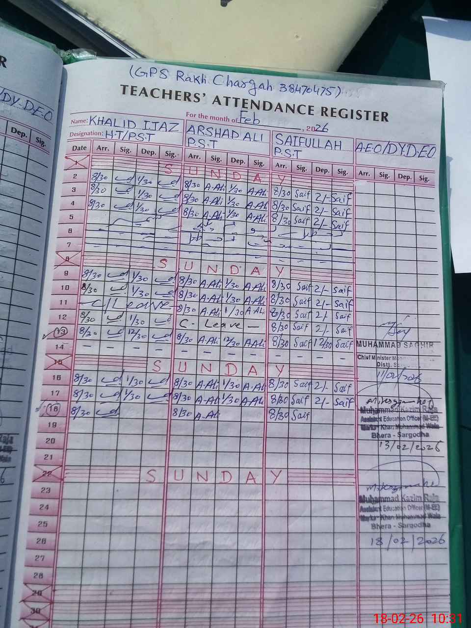 | Name: Kh**** Ij**** Designation: (School Headmaster's/Headmistress's) PST Phone/Cell Number: 03**** |