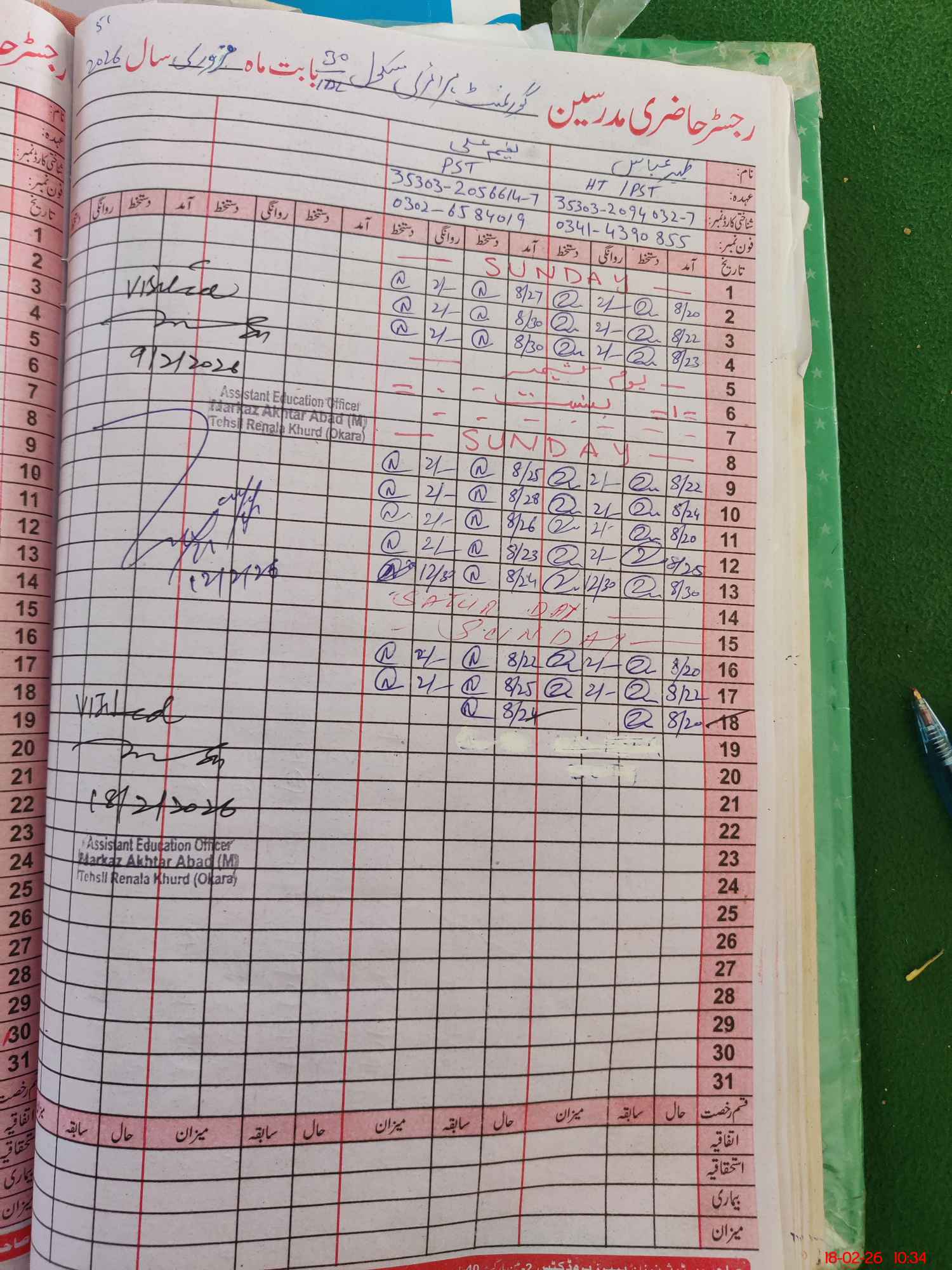 | Name: Za**** Ab**** Designation: (School Headmaster's/Headmistress's) PST Phone/Cell Number: 03**** |