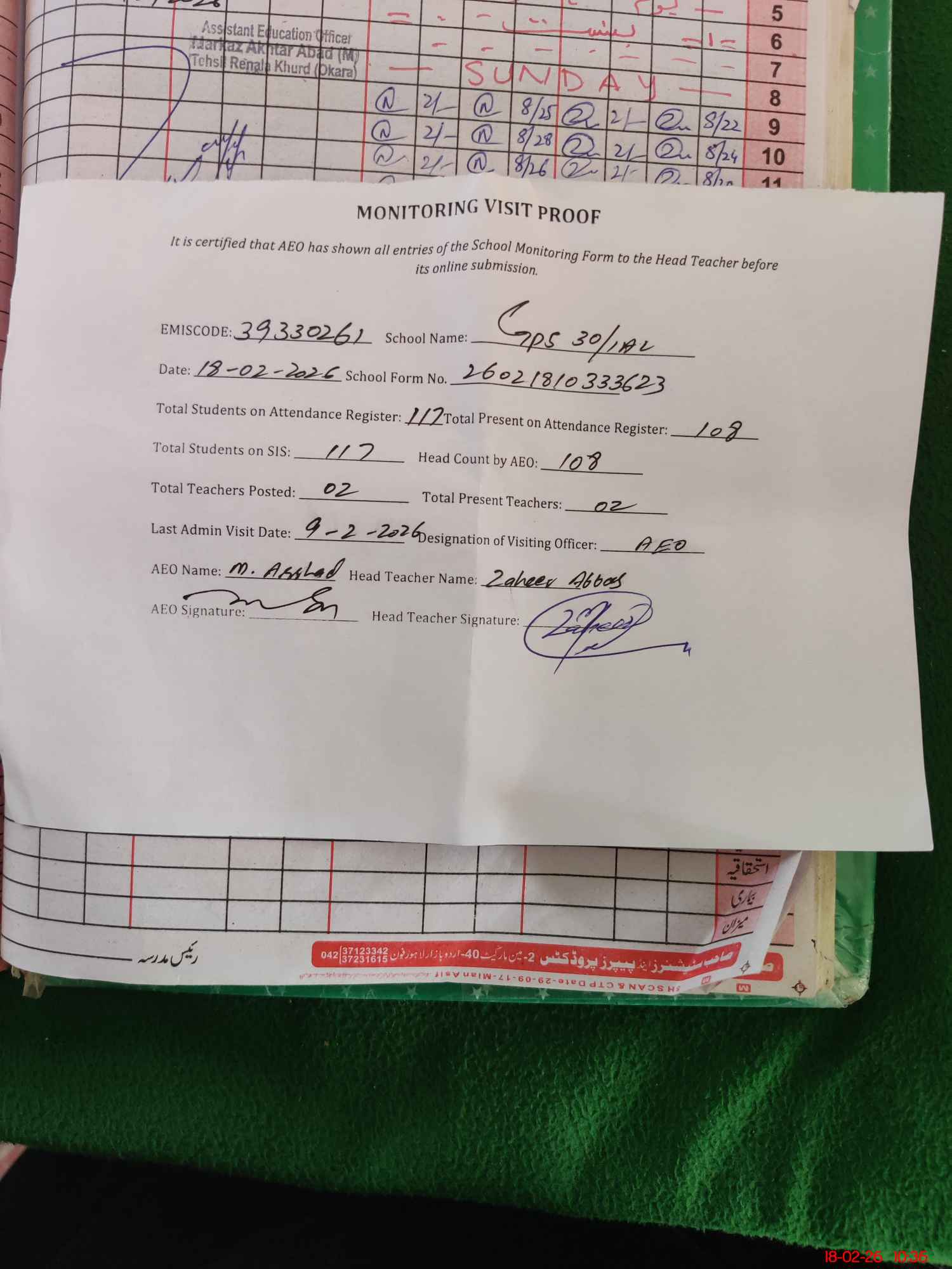 | EMIS Code: 39330261 | Name of School: GPS CHAK NO 30/1.AL | |||