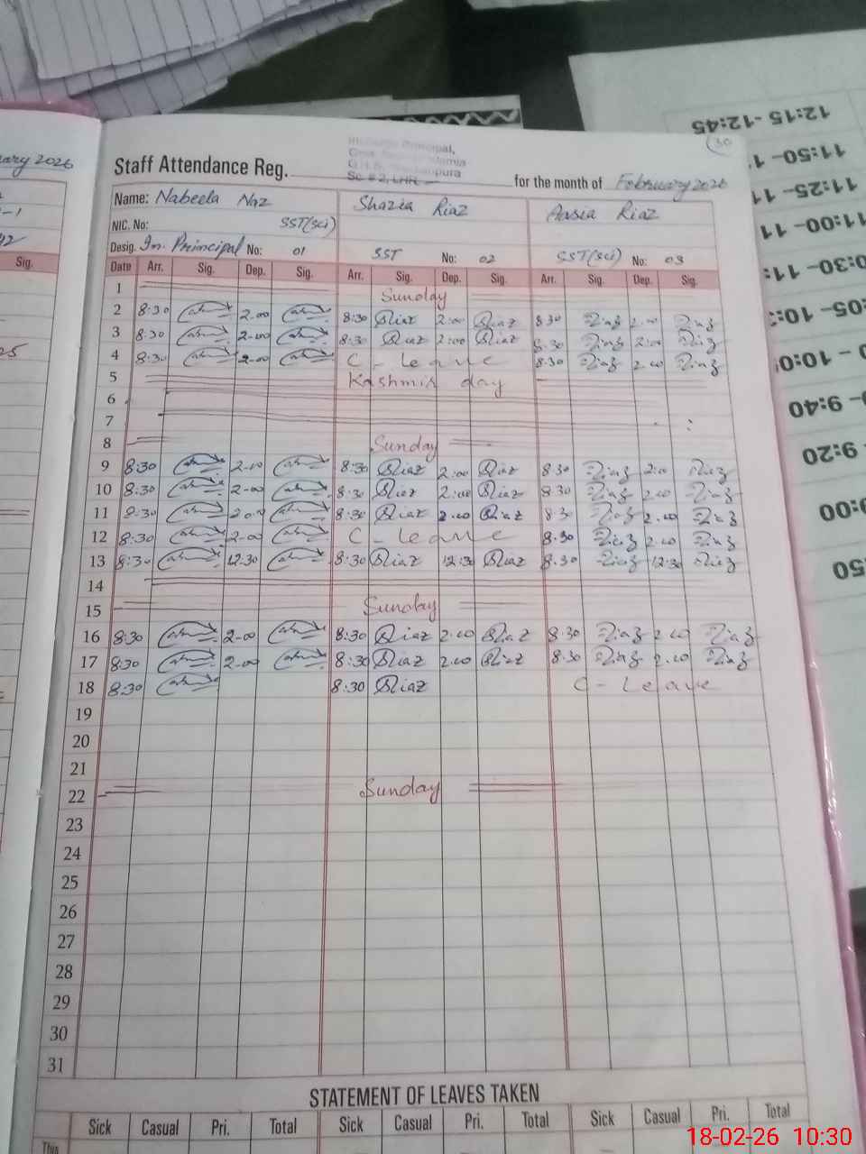 | 35**** | Im**** Kh**** | NAIB QASID | Contract | 0 | 0 | 31 | 0 | 0 | 0 | 0 | 0 | 0 | Absent (Un-Authorized) |