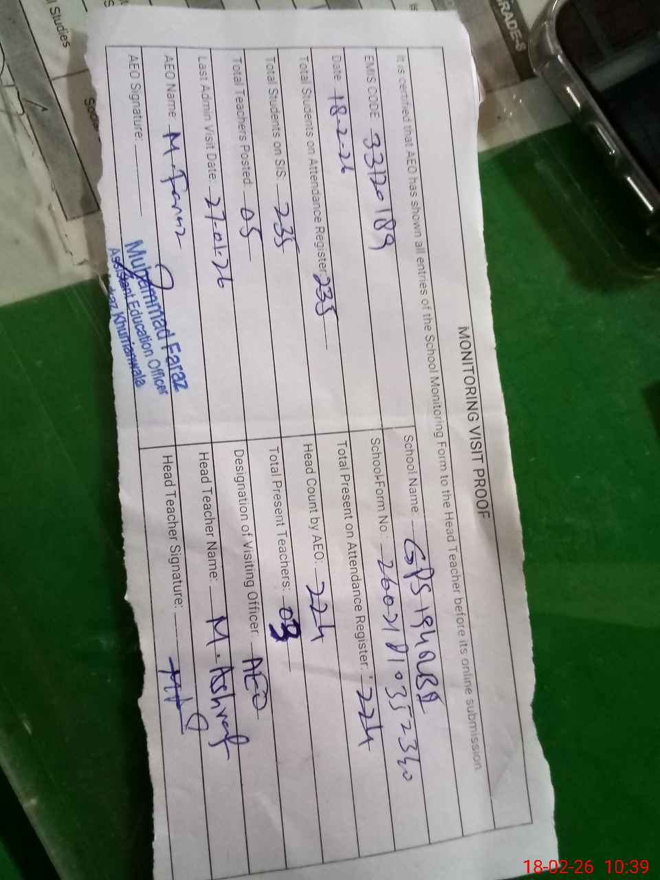 | EMIS Code: 33120189 | Name of School: GPS CHAK 194 RB II | |||