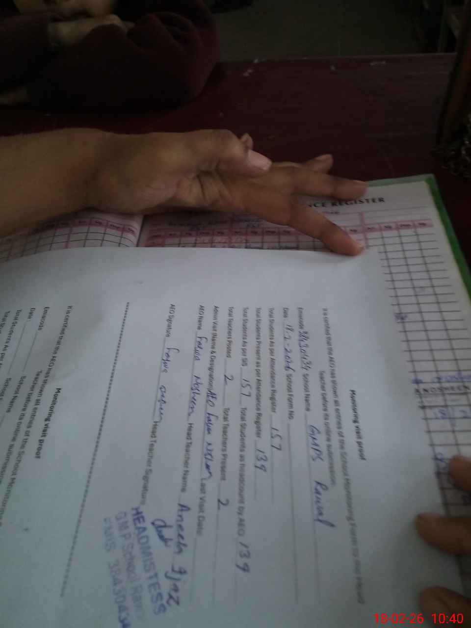 | Attendance Register | Head Teacher | MEA with School | Visit Proof |