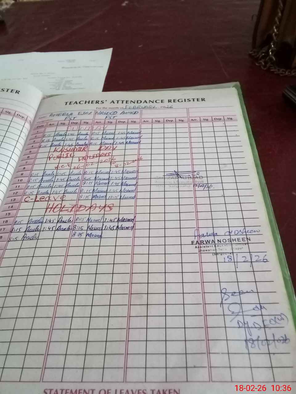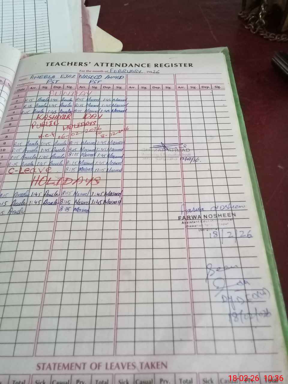| CNIC | Full Name | Designation | R/C | Absence During Last Calender Month |