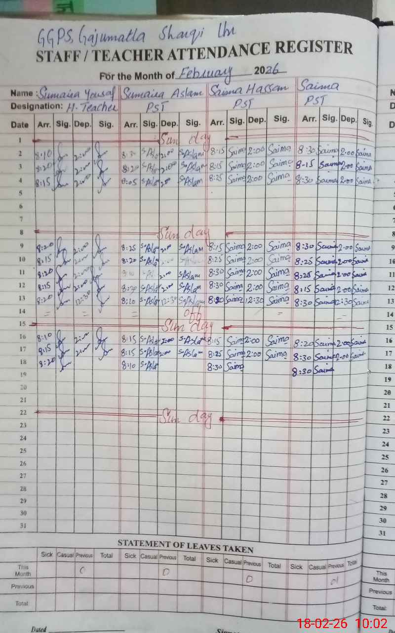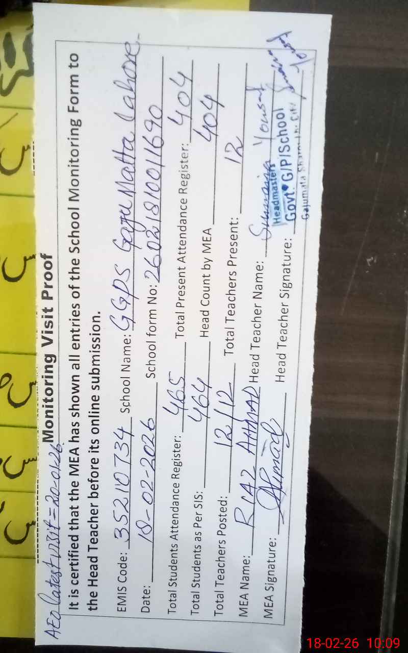 | EMIS Code: 35210734 | Name of School: GGPS GAJU MATTA SHARQI | |||