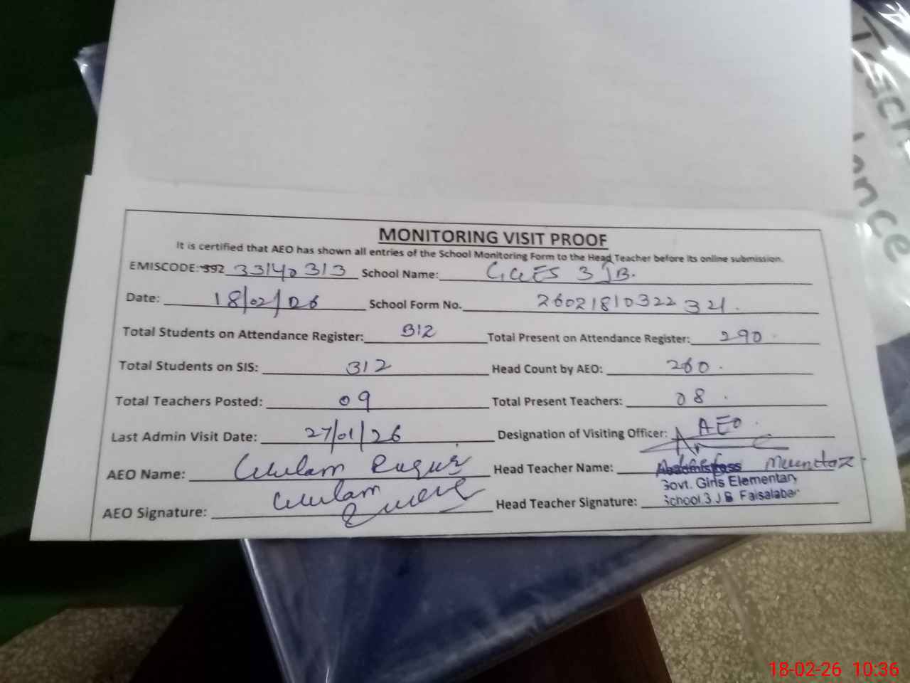 | EMIS Code: 33140313 | Name of School: GGES CHAK 3 JB | |||
