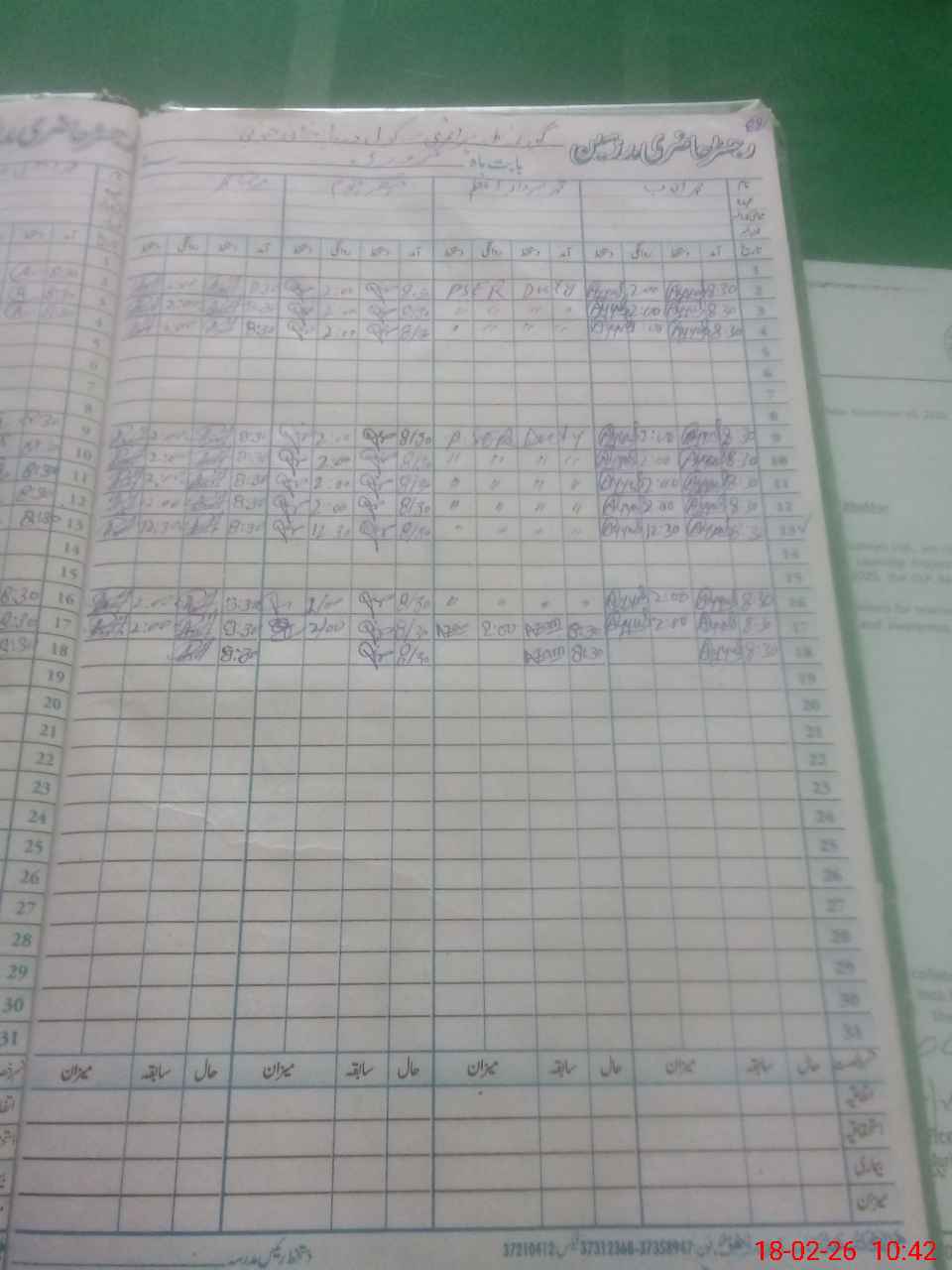 | CNIC | Full Name | Designation | R/C | Absence During Last Calender Month |