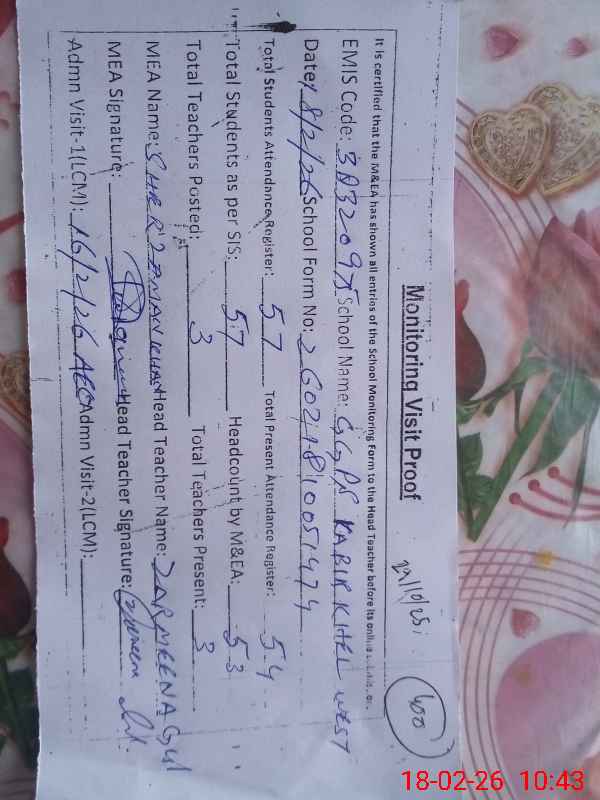 | EMIS Code: 38320975 | Name of School: GGPS KABIR KHEL WEST | |||