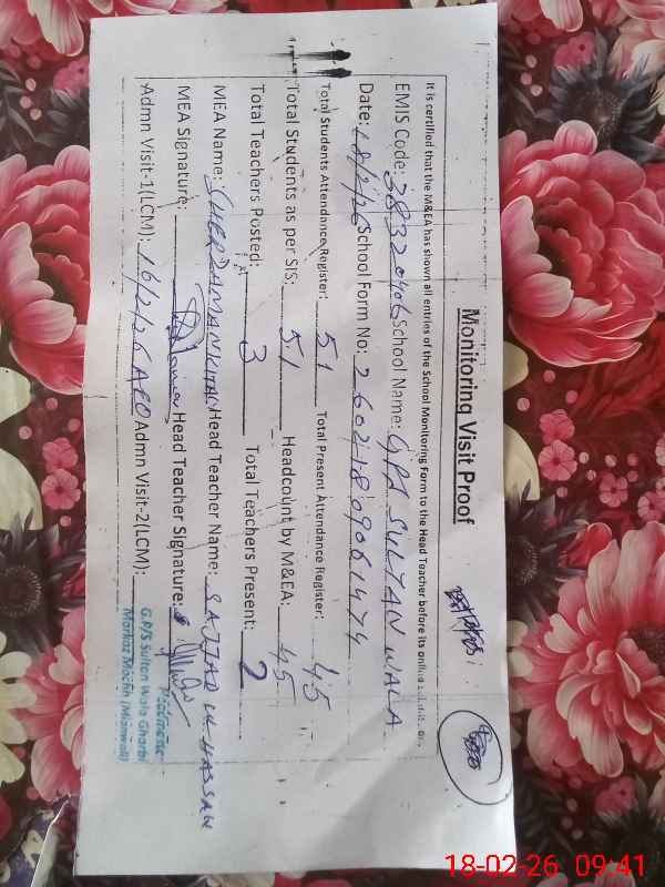 | EMIS Code: 38320406 | Name of School: GPS SULTAN WALA WEST | |||
