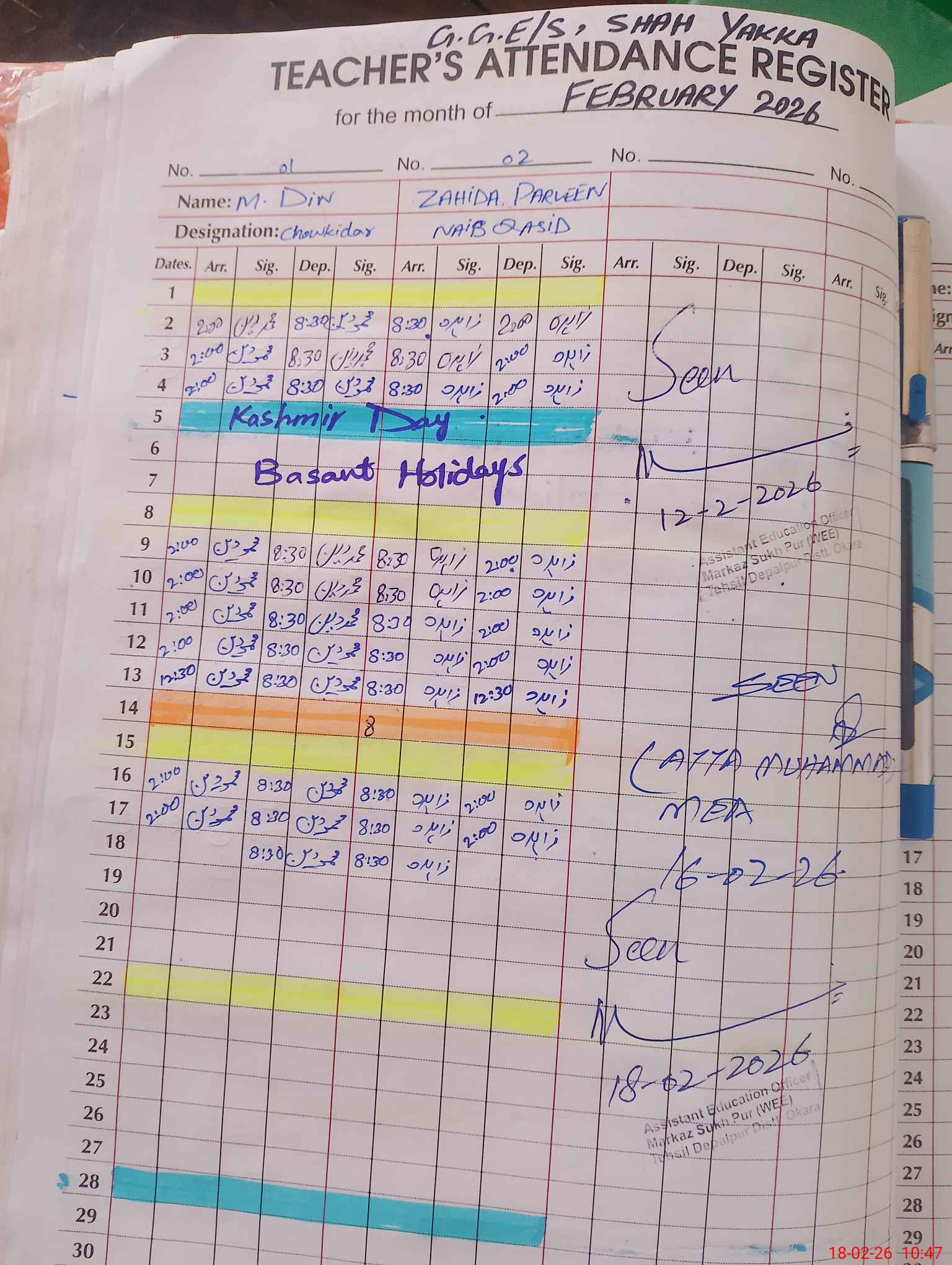 | Name: MA**** SH**** Designation: (School Headmaster's/Headmistress's) SSE Eng Phone/Cell Number: 03**** |
