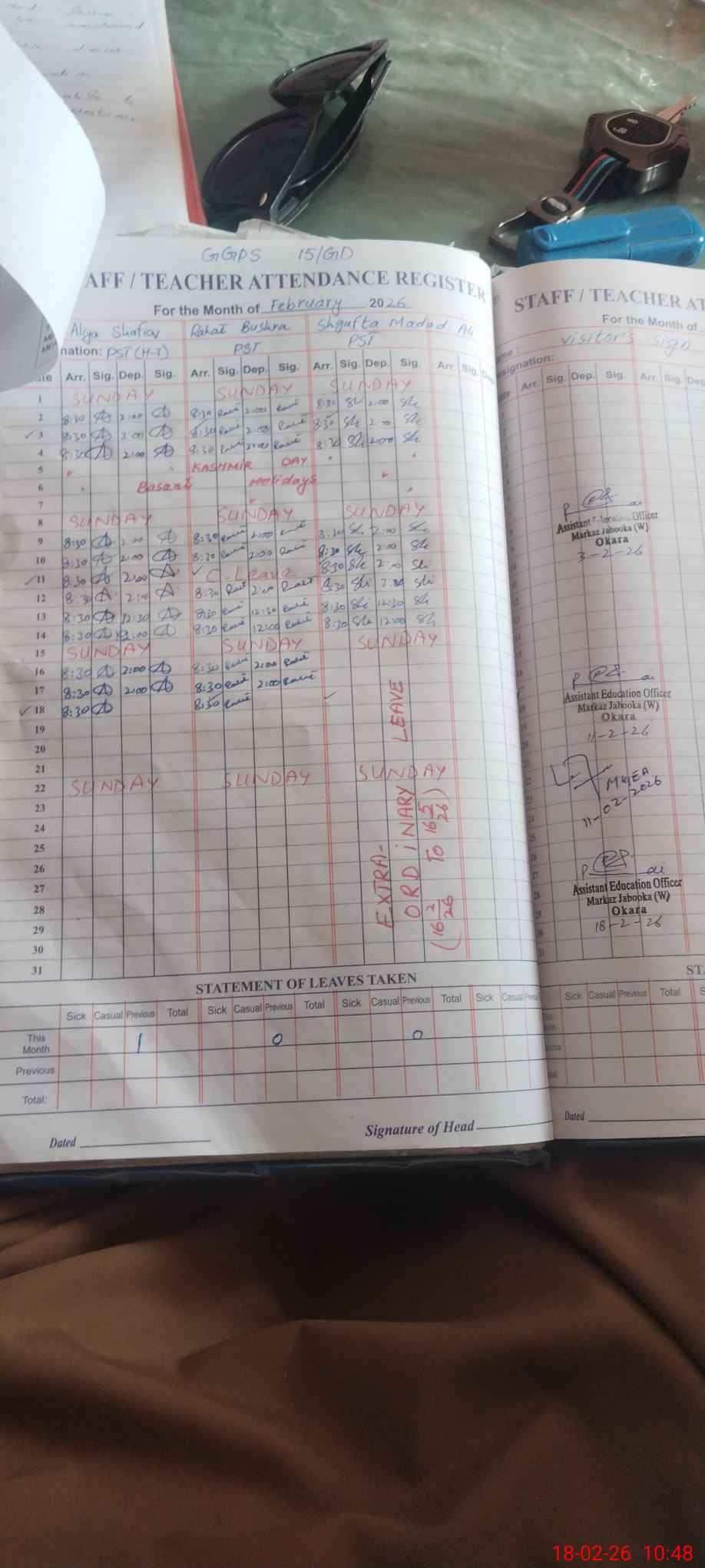 | Leave | Duty | Absent | Maternity | Medical | Ex- Pak |