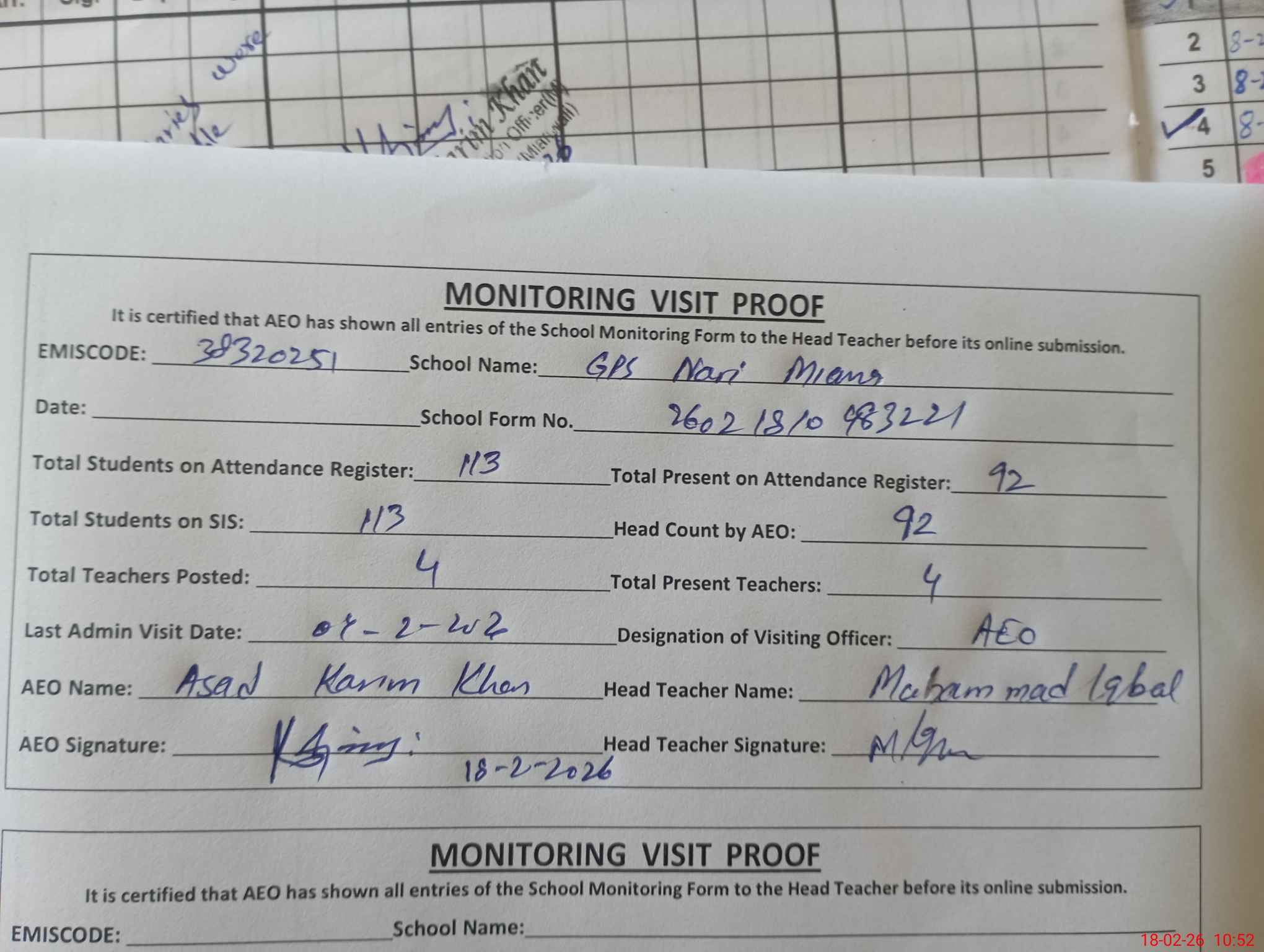 | Monitoring Date: 18-02-2026 | Start Time: 18-02-2026 09:42 AM | End Time: 18-02-2026 10:52 AM | Name of MEA: As**** Ka**** Kh**** | |