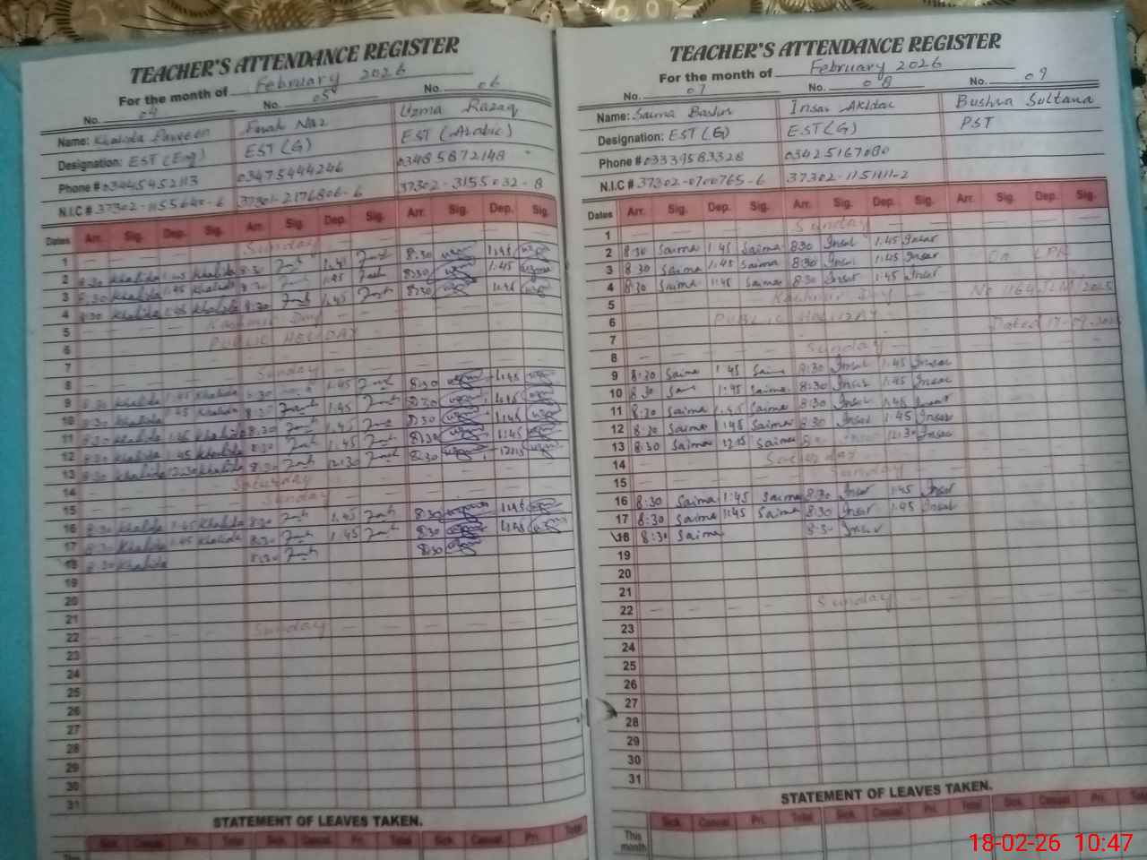 | Name: Za**** Pa**** Designation: (School Headmaster's/Headmistress's) H, MIS IT TEACHER Phone/Cell Number: 03**** |
