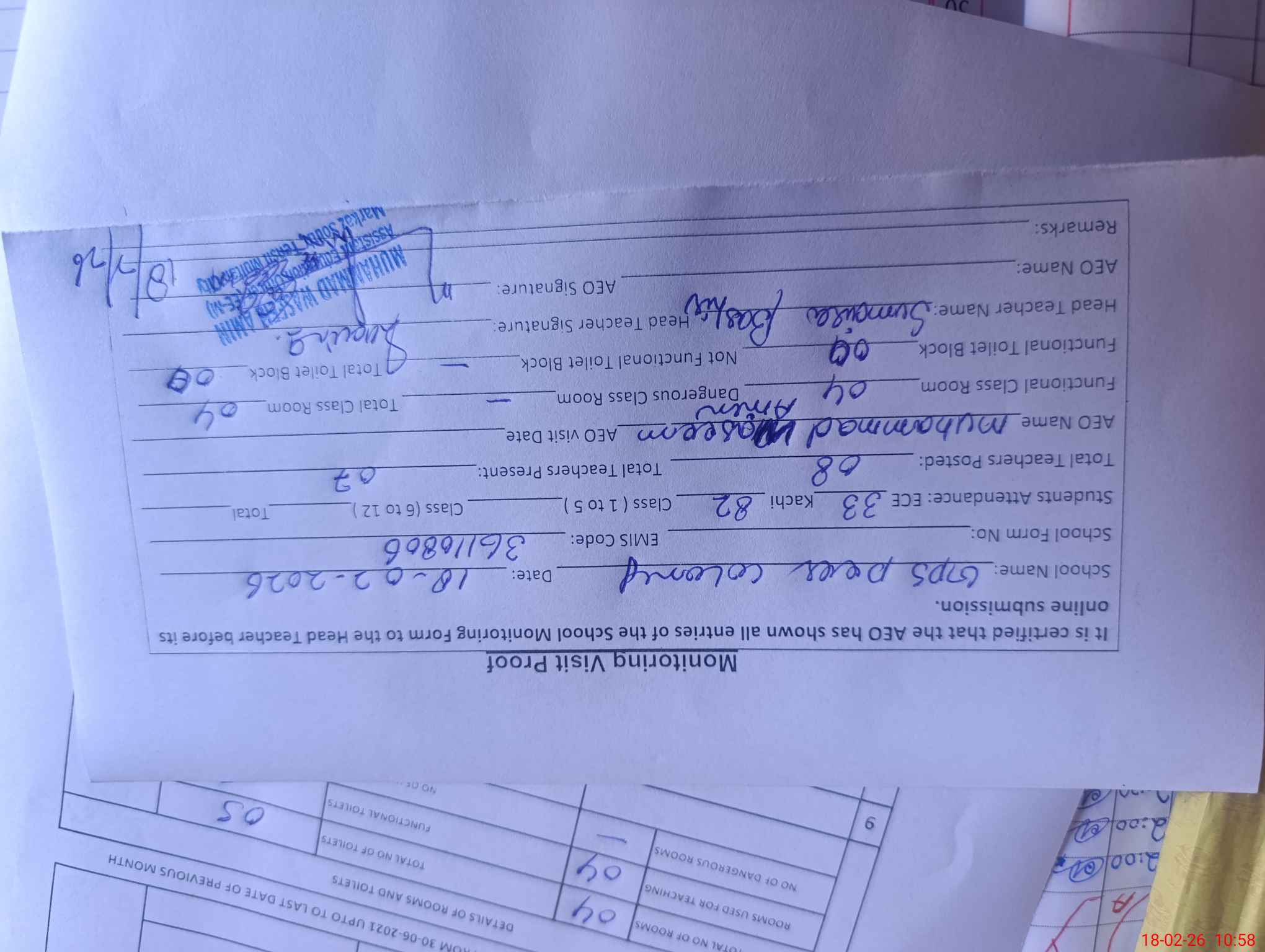 | Certified that this School was Inspected by the Undersigned MEA/DMO Today and the Information Stated Above is as Per Record. | |||||