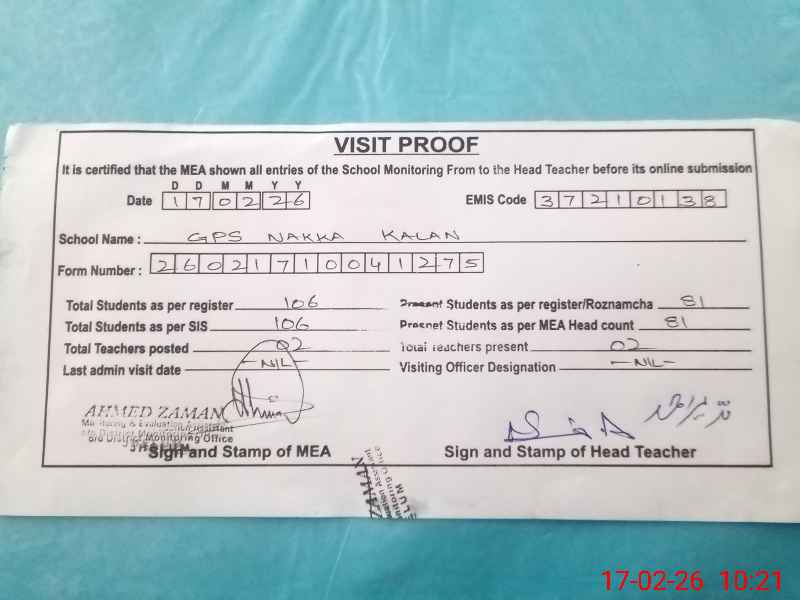 | EMIS Code: 37210138 | Name of School: GPS NAKKA KALAN | |||