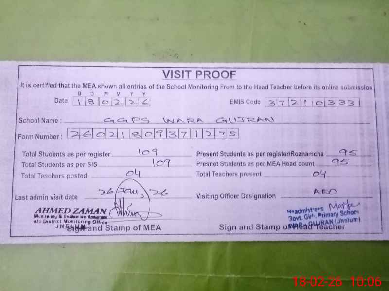 | EMIS Code: 37210333 | Name of School: GGPS WARA GUJRAN | |||