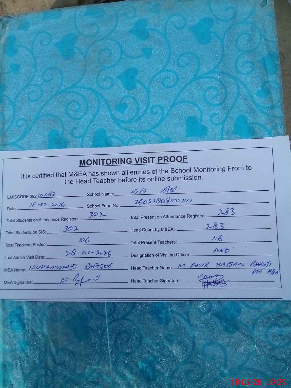 | EMIS Code: 39210083 | Name of School: GPS 18-SP P/O 17/S.P PAKPATTAN | |||