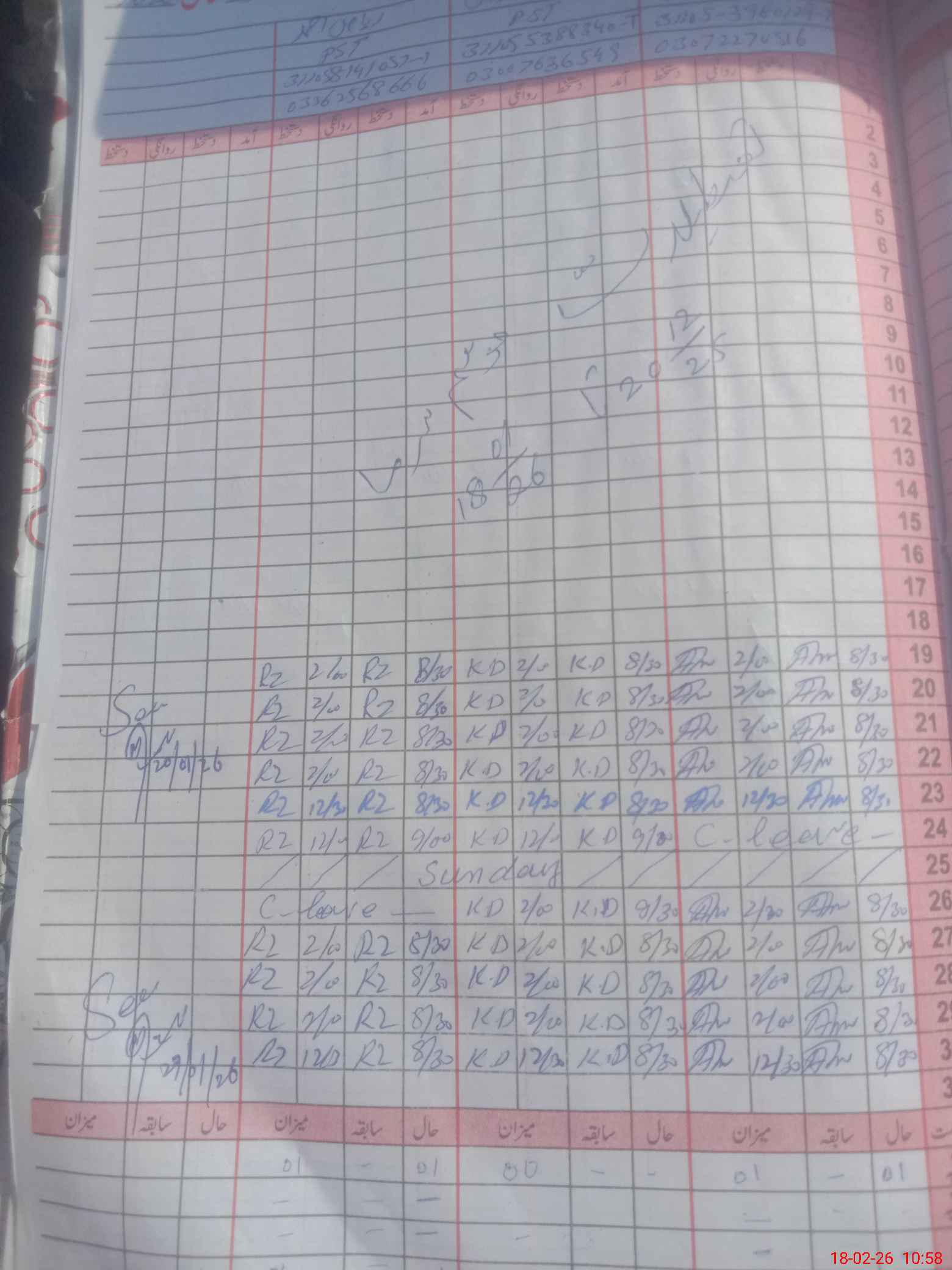 | CNIC | Full Name | Designation | R/C | Absence during last cal. month |