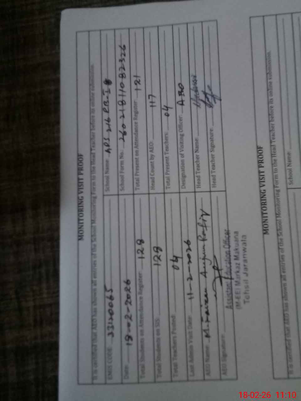 | EMIS Code: 33120065 | Name of School: GPS CHAK 216 RB | |||