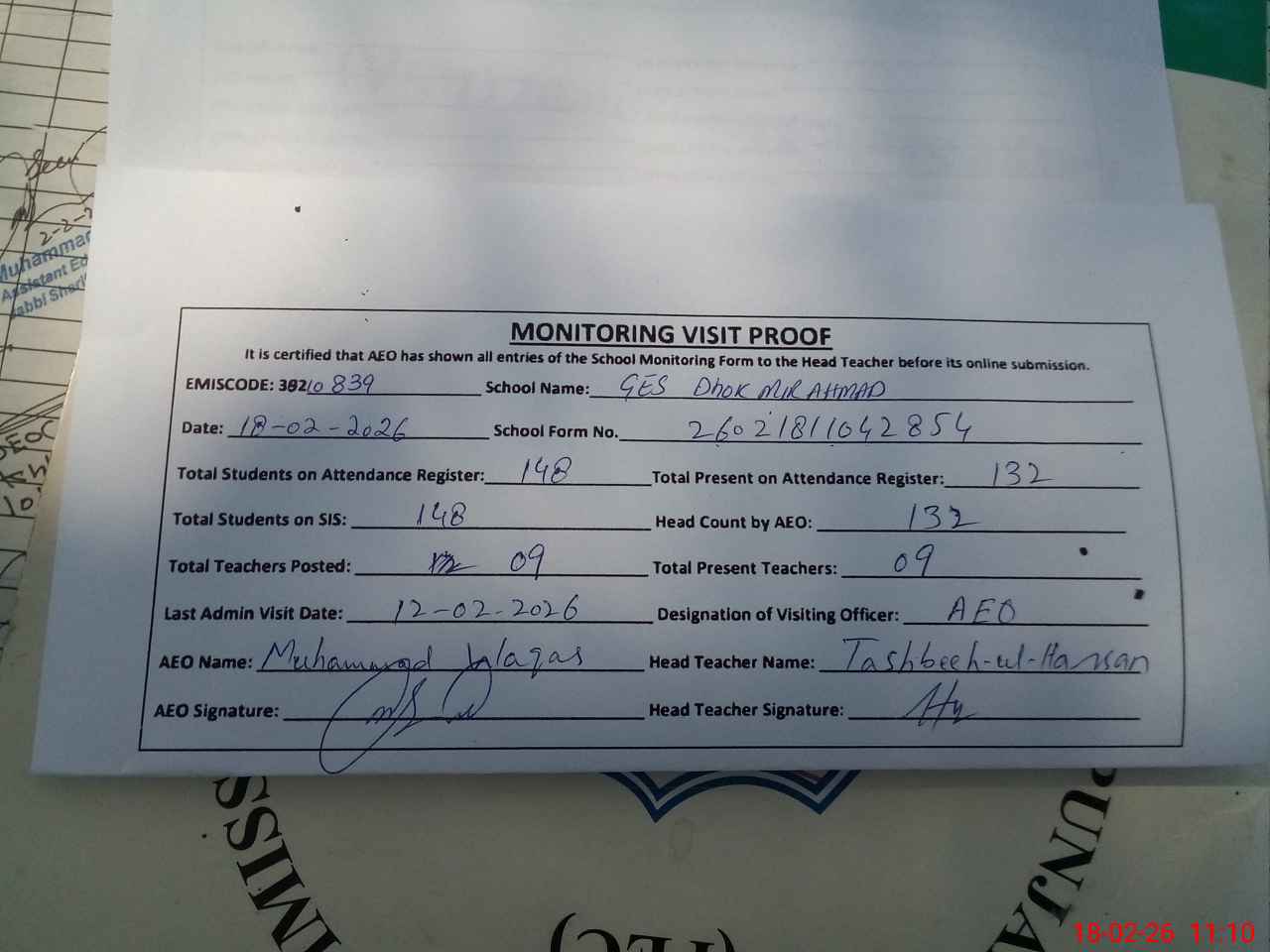 | EMIS Code: 38210839 | Name of School: GES DHOK MEER AHMED | |||
