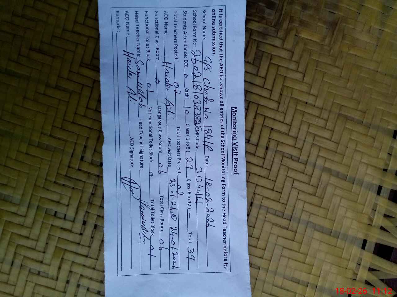 | EMIS Code: 31340161 | Name of School: GPS CHAK NO 184/P | |||