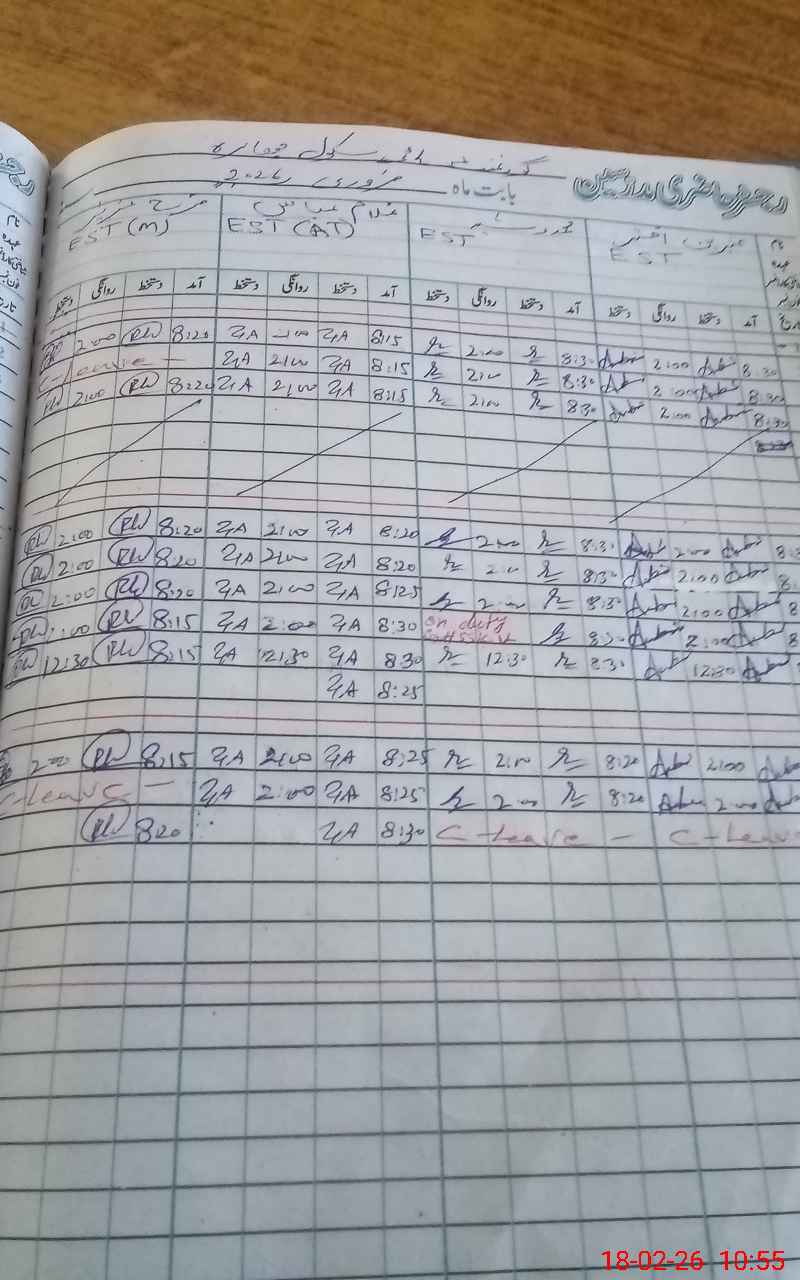 | CNIC | Full Name | Designation | R/C | Absence During Last Calender Month |