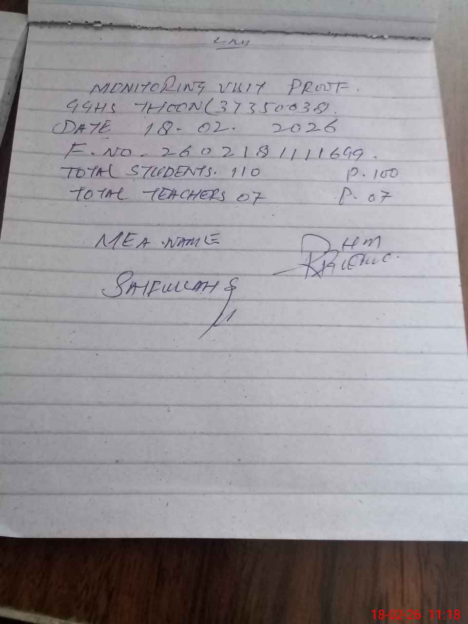 | Monitoring Date: 18-02-2026 | Start Time: 18-02-2026 11:04 AM | End Time: 18-02-2026 11:18 AM | Name of MEA: Sa**** | |