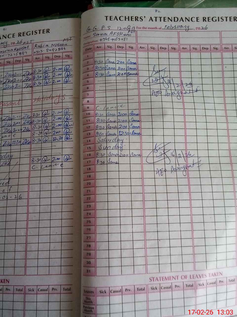 | Name: MU**** AF**** Designation: (School Headmaster's/Headmistress's) PST Phone/Cell Number: 03**** |