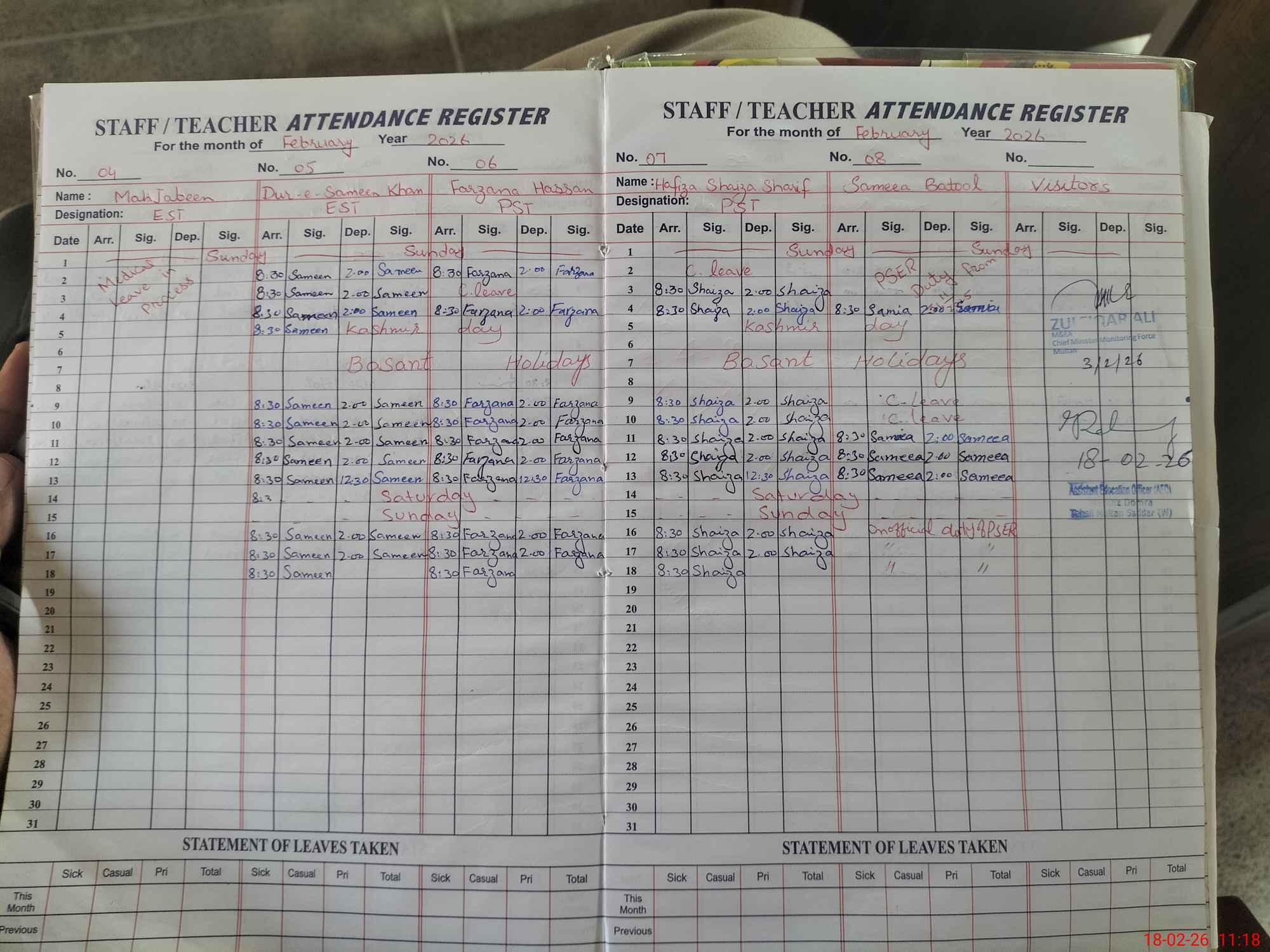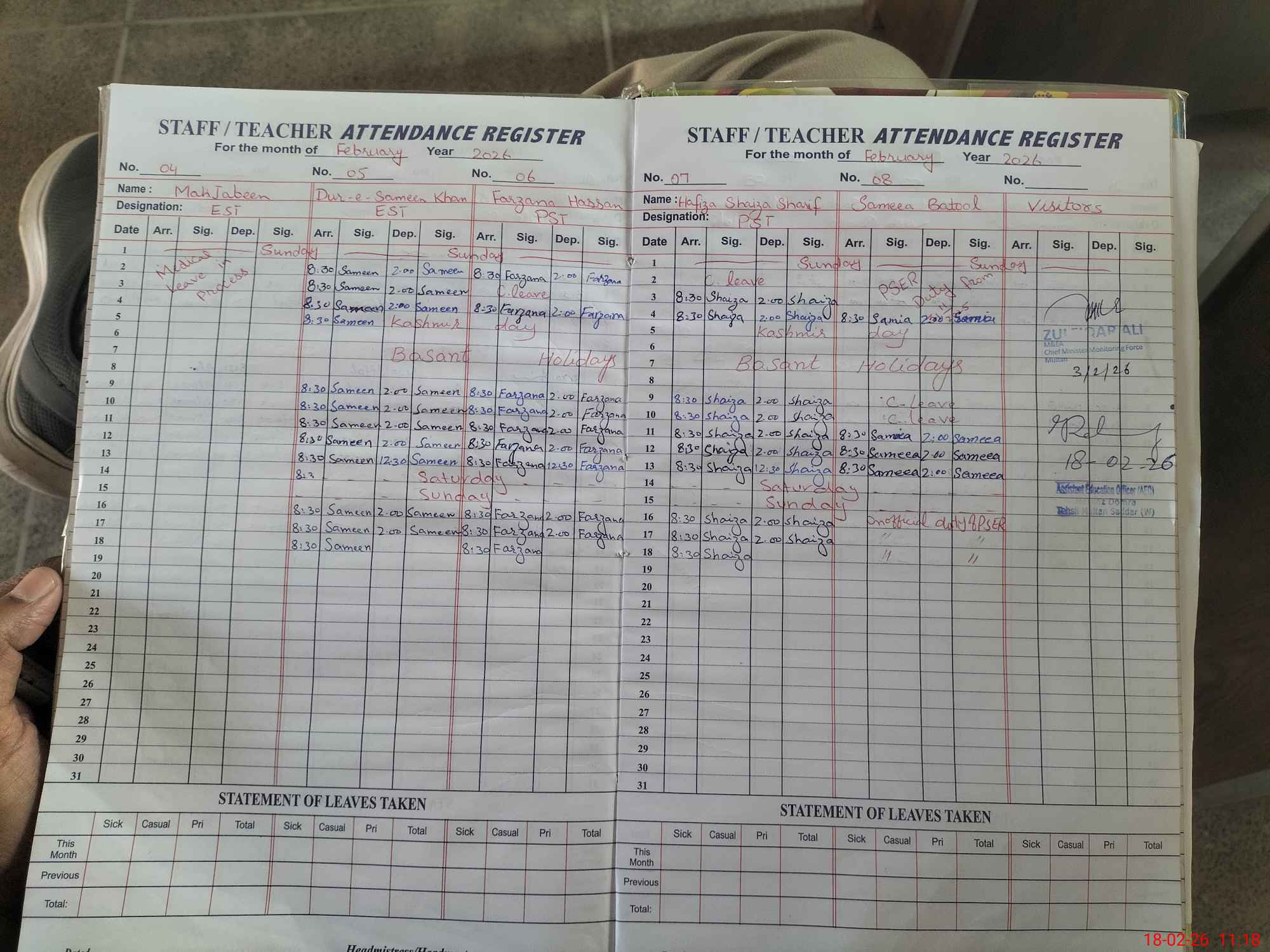 | Monitoring Date: 18-02-2026 | Start Time: 18-02-2026 10:40 AM | End Time: 18-02-2026 11:18 AM | Name of MEA: Ha**** Sy**** Ha**** Re**** Ka**** | |