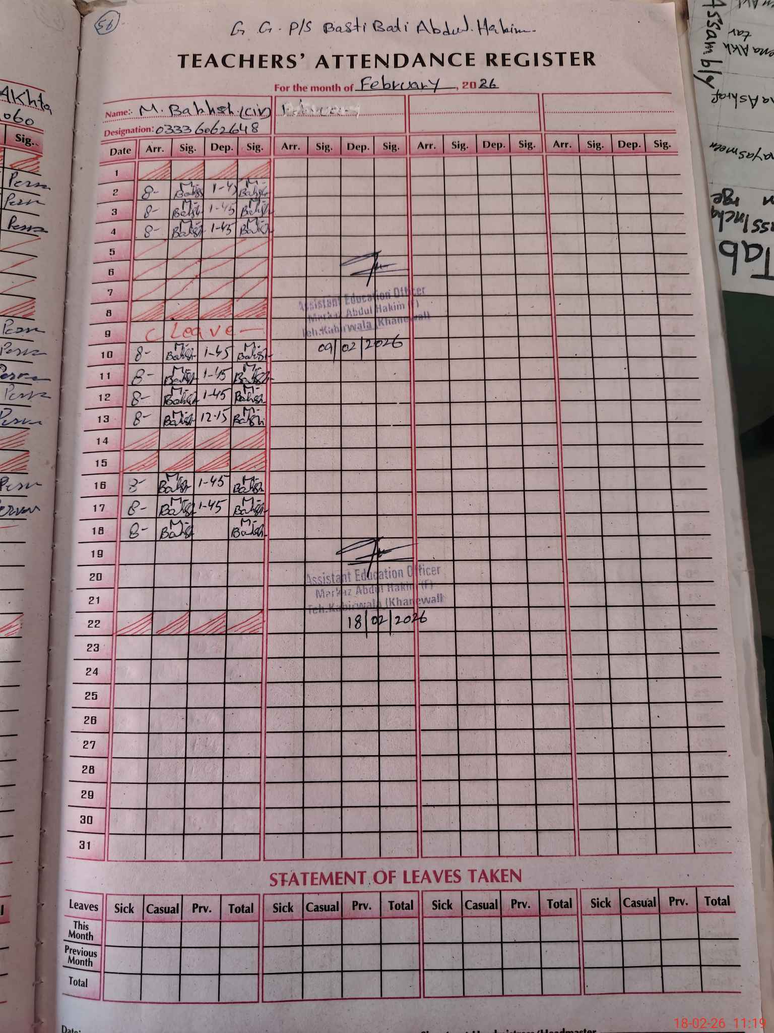 | EMIS Code: 36410438 | Name of School: GGPS BASTI BATI, ABDUL HAKIM | |||