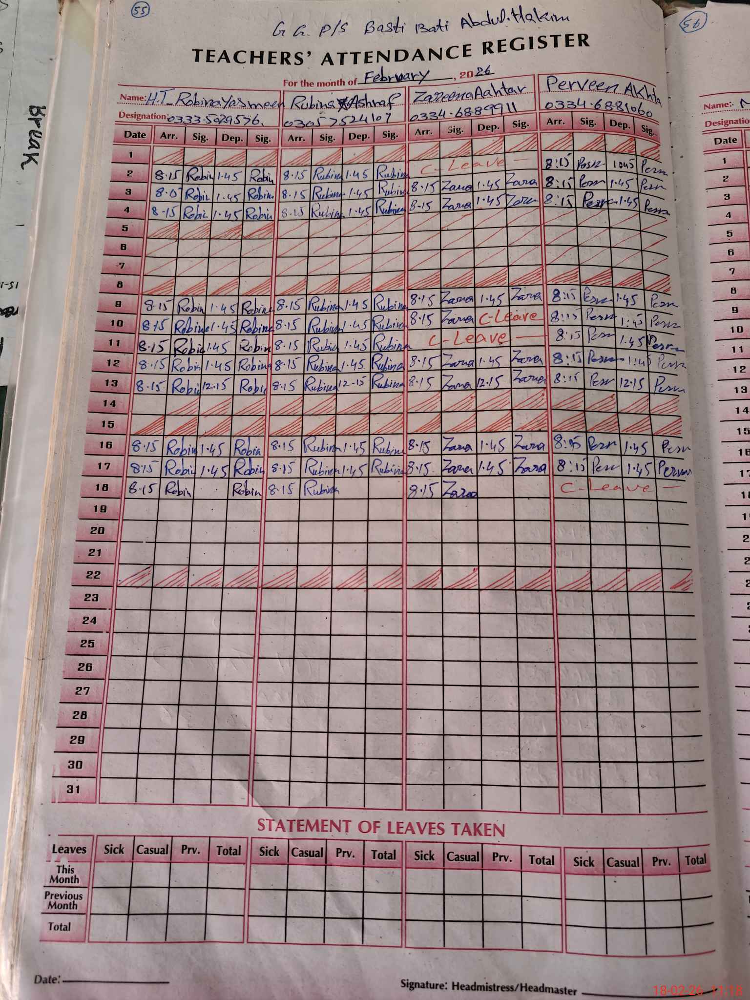 | Name: Ro**** Ya**** Designation: (School Headmaster's/Headmistress's) PST Phone/Cell Number: 03**** |