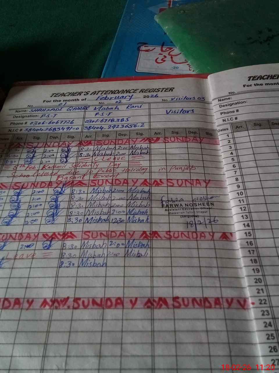 | Name: SH**** QA**** Designation: (School Headmaster's/Headmistress's) PST Phone/Cell Number: 03**** |