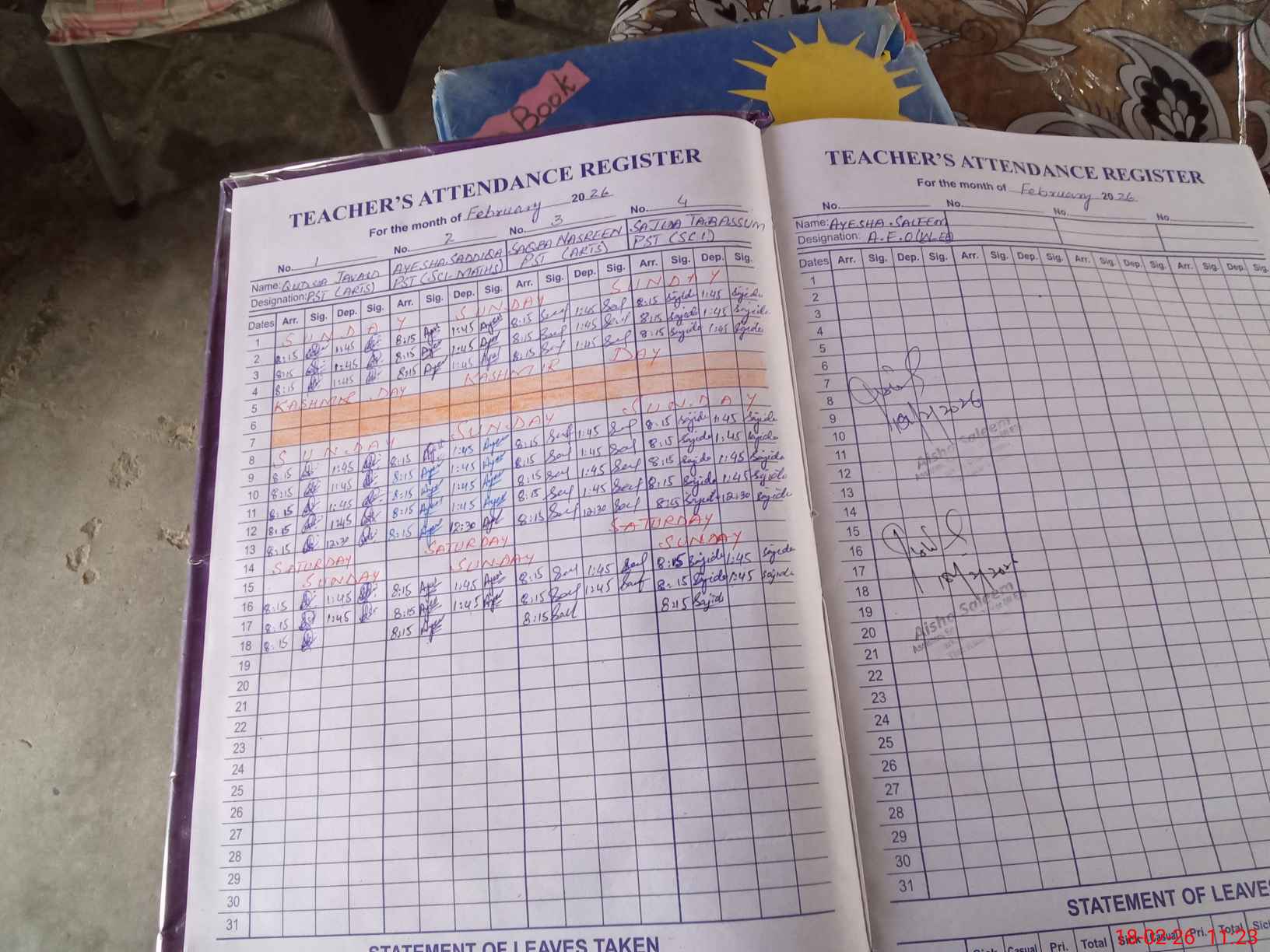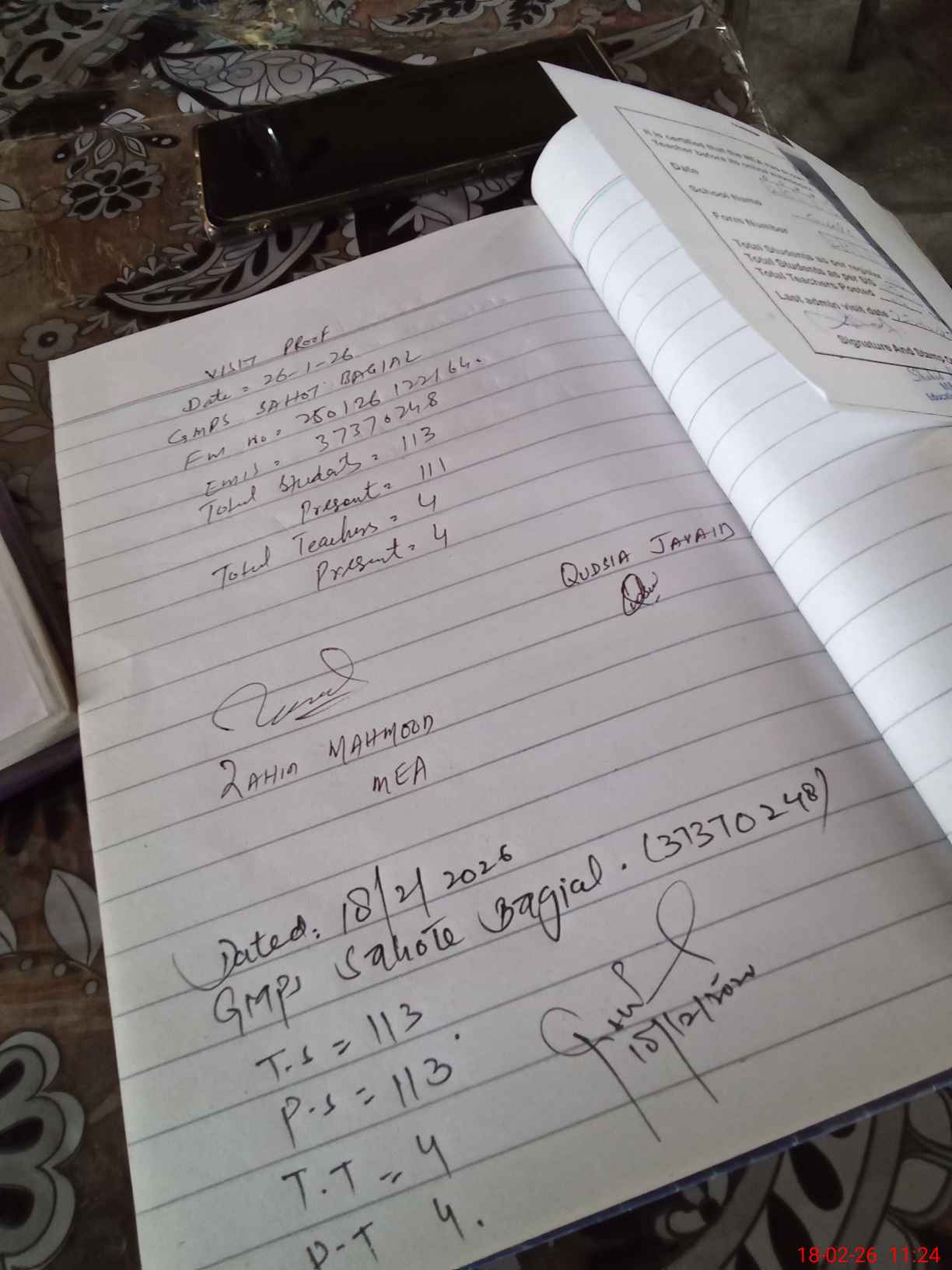 | Attendance Register | Head Teacher | MEA with School | Visit Proof |