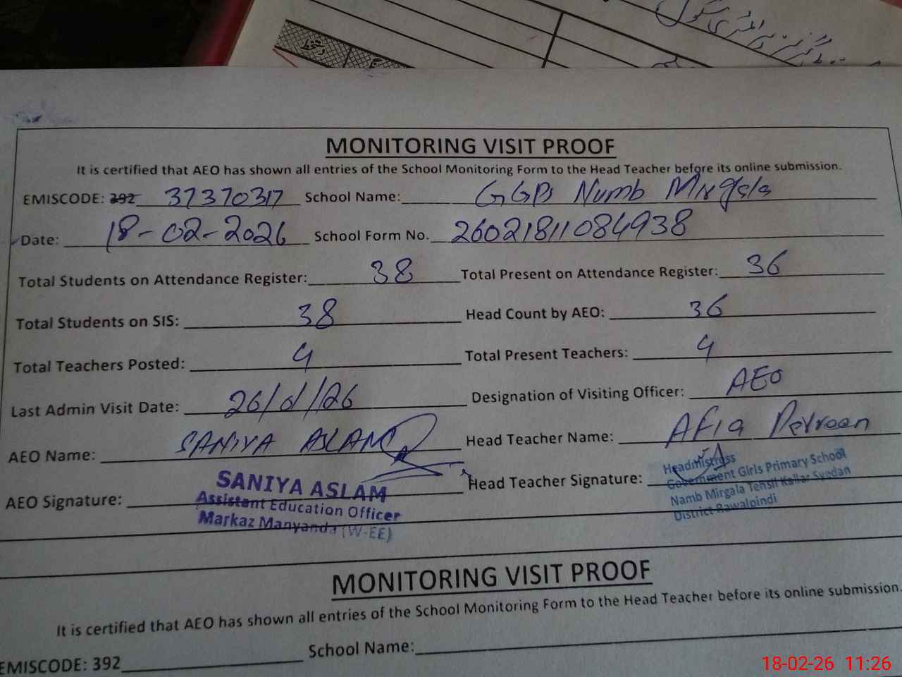 | EMIS Code: 37370317 | Name of School: GGPS NUMB MIRGALA | |||