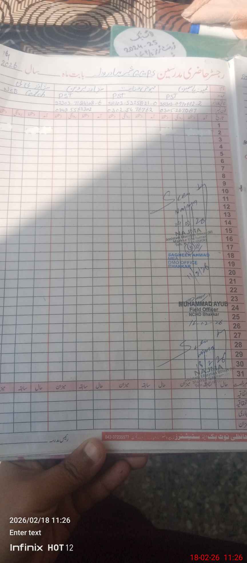 | District: BHAKKAR | Tehsil: KALLUR KOT | Markaz: GHULAMAN-FEMALE | Level: Primary | |